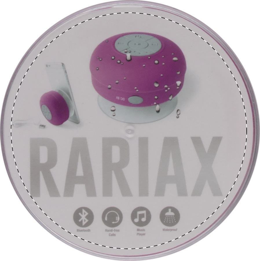 Růžový vodotěsný reproduktor RARIAX kombinuje hravý design s technickou odolností proti stříkající vodě dle normy IPX4. Speciální pogumovaný povrch a přísavka umožňují poslech hudby ve sprše nebo u venkovního bazénu bez obav o funkčnost zařízení.