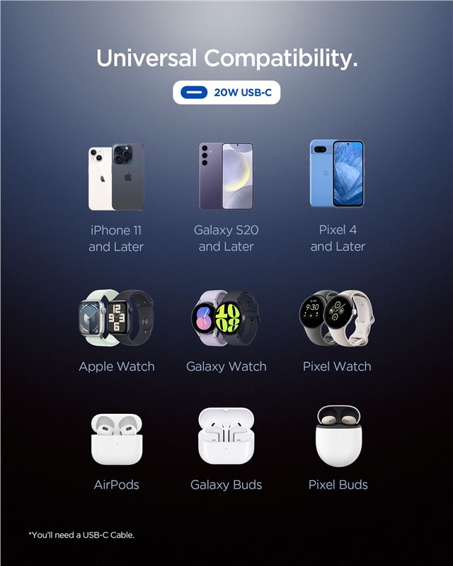 Bílá nabíječka do sítě s výstupem USB-C využívá technologii GaN pro vysokou účinnost a nízkou provozní teplotu při výkonu 20 W. Funkce Quantum Boost automaticky optimalizuje průběh napájení, aby bylo nabíjení smartphonu co nejrychlejší a zároveň šetrné k baterii.