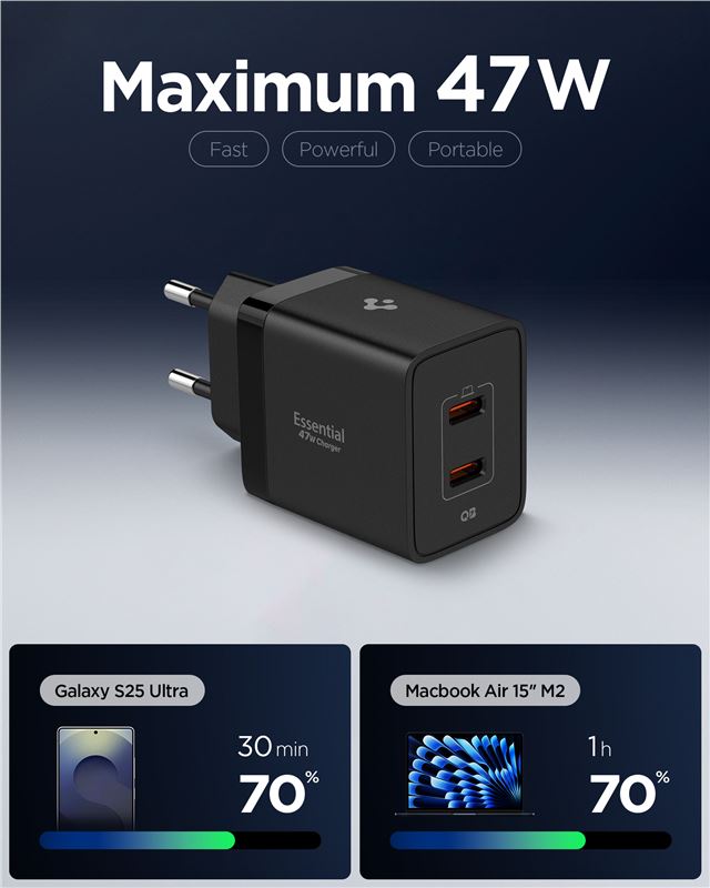 Adaptér Spigen Essential 47W Wall Charger EE472EU - černá