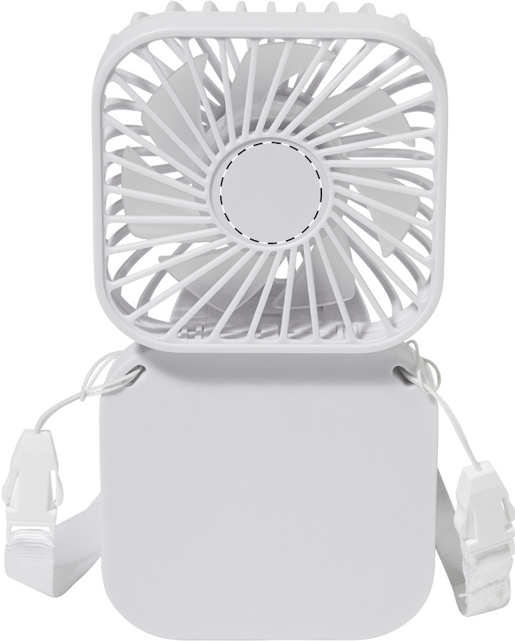 Elektrický ruční větráček z recyklovaného ABS plastu s poutkem na krk a vestavěnou dobíjecí baterií přes USB (500 mAh). S nastavitelným úhlem hlavy a 3 rychlostmi. Včetně USB kabelu pro nabíjení.