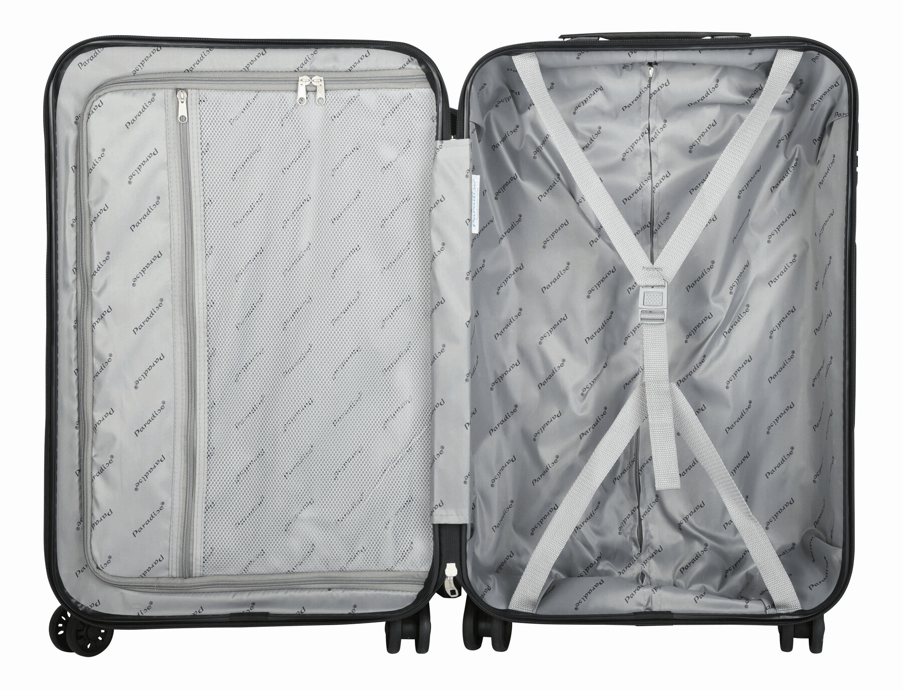 Sada kufrů AURORA, 3dílná: balení na obou úrovních, hlavní přihrádka s přepážkou, síťovaná kapsa a balicí popruh, uzamykatelný systém kufrů, 4 hladce se pohybující dvojitá otočná kolečka s možností otáčení o 360°, včetně třímístného kombinačního zámku
