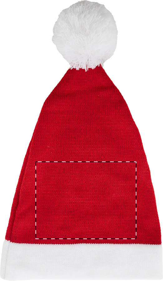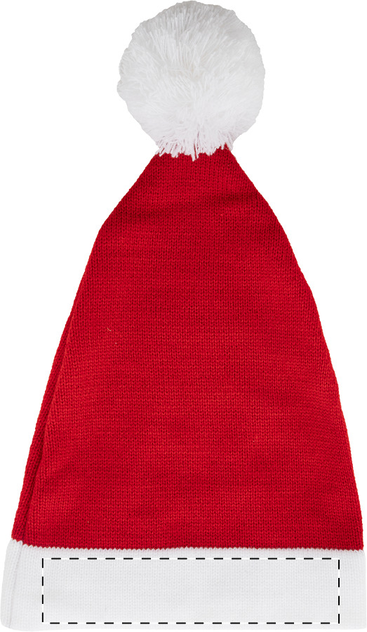 Pletená vánoční čepice Santy z akrylu s bílým lemováním a bambulí.