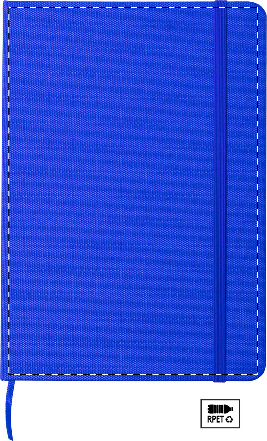 Udržitelný modrý zápisník formátu A5 představuje praktického společníka pro každodenní poznámky. Povrch potažený recyklovaným RPET polyesterem chrání 80 linkovaných listů a dodává bloku moderní ekologický vzhled.