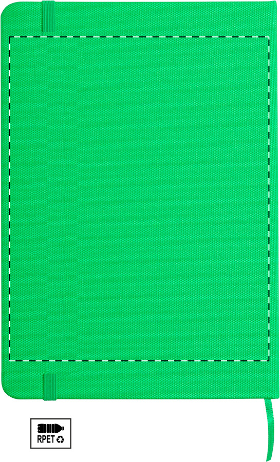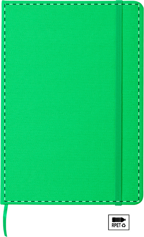 Ekologický zelený zápisník formátu A5 spojuje funkčnost s šetrným přístupem k přírodě. Povrch desek z recyklovaného polyesteru je příjemný na dotek a zajišťuje dostatečnou odolnost při častém přenášení.