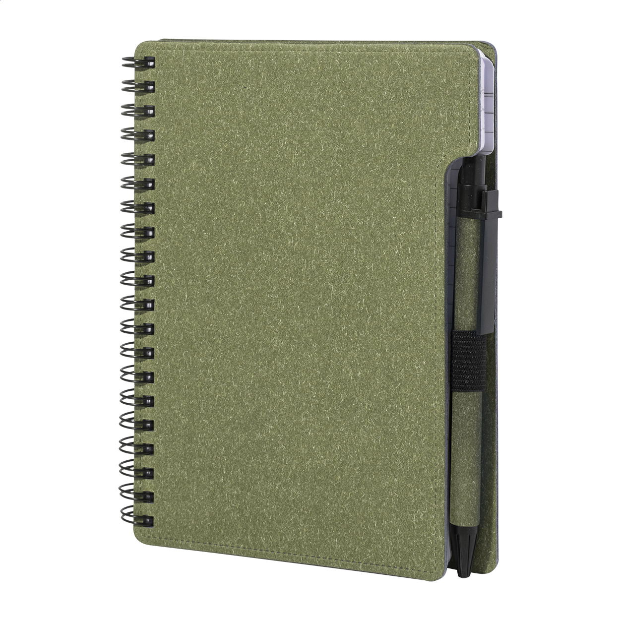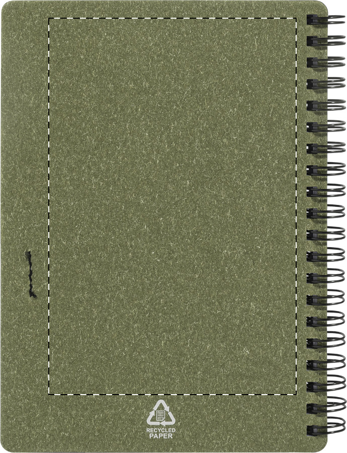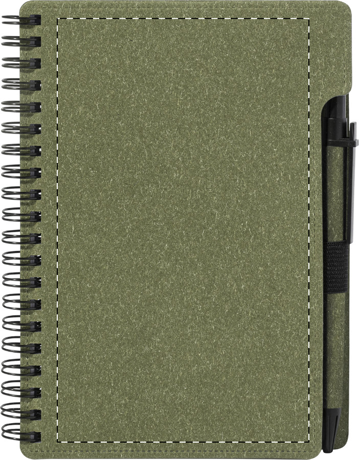 Spirálový blok A6 z recyklovaného papíru s 80 linkovanými listy. Včetně recyklovaného papíru a kuličkového pera z recyklovaného PP s modrou náplní.