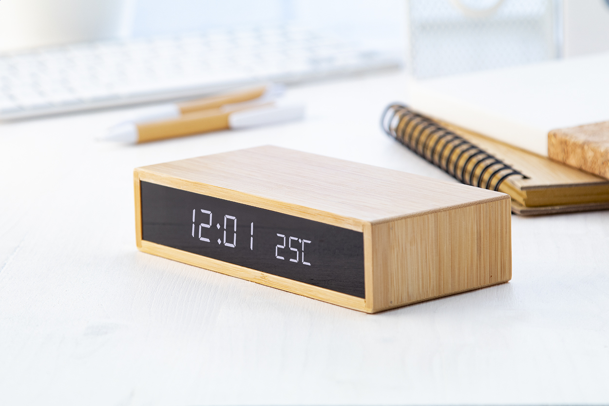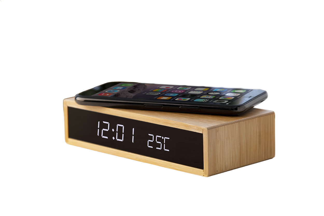 Bambusové hodiny s bezdrátovou nabíječkou MOLARM - přírodní