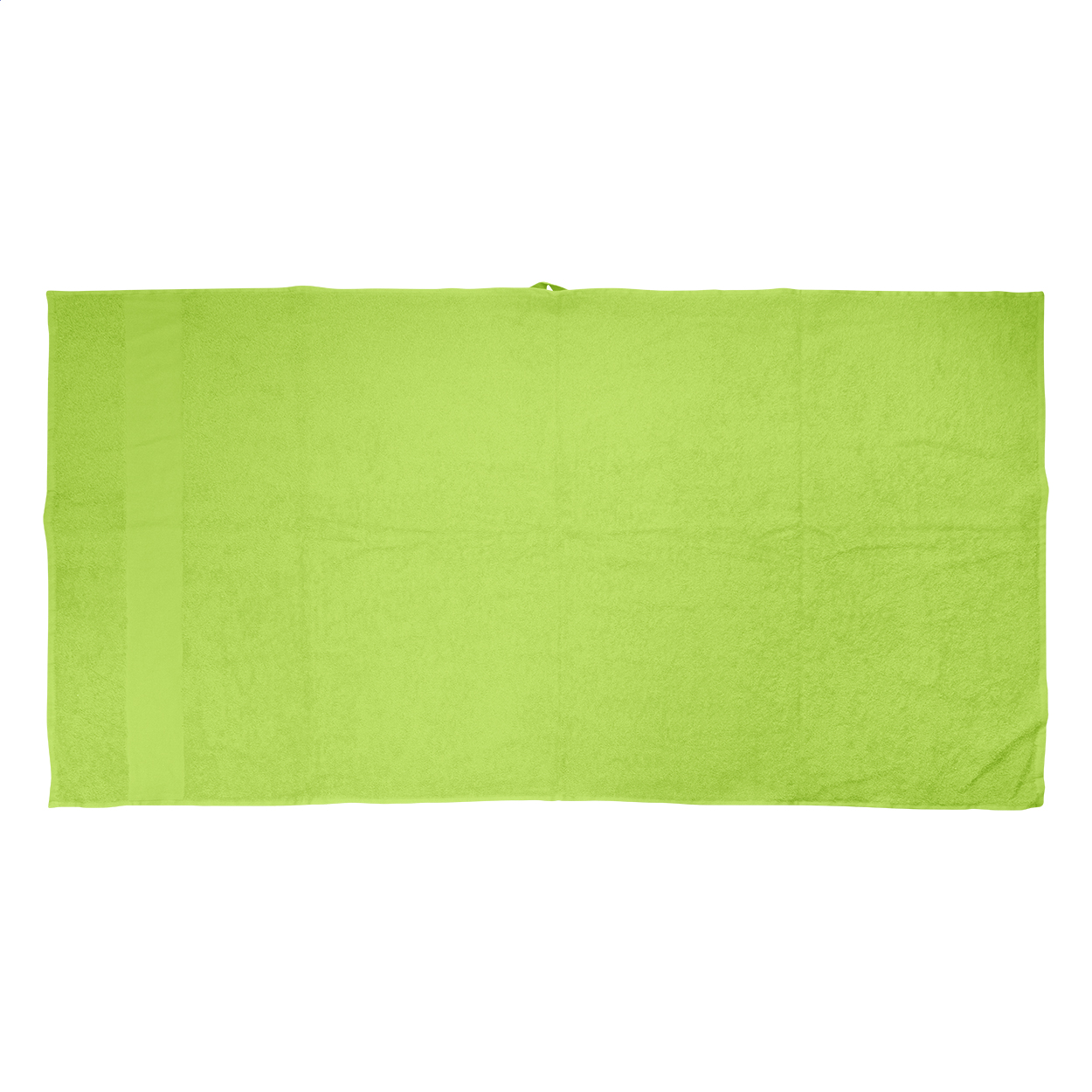 Bavlněná froté osuška s poutkem na zavěšení a potiskovatelnou bordurou. 100% bavlna, 360 g/m².