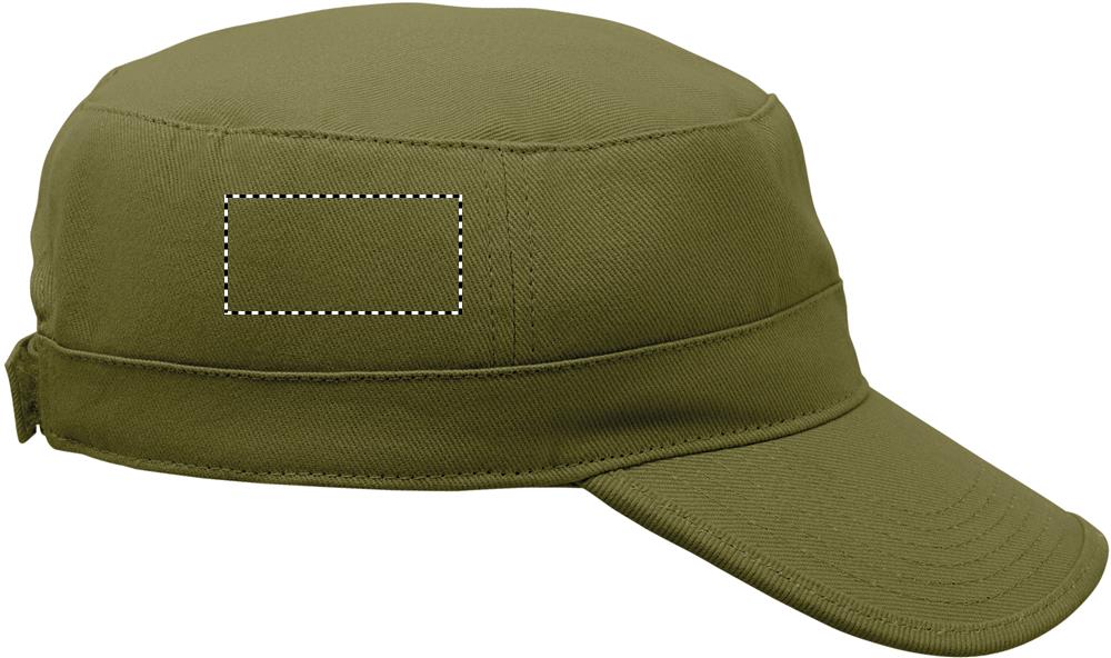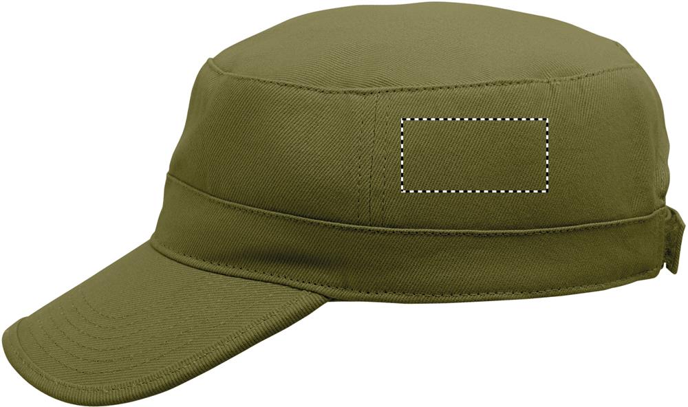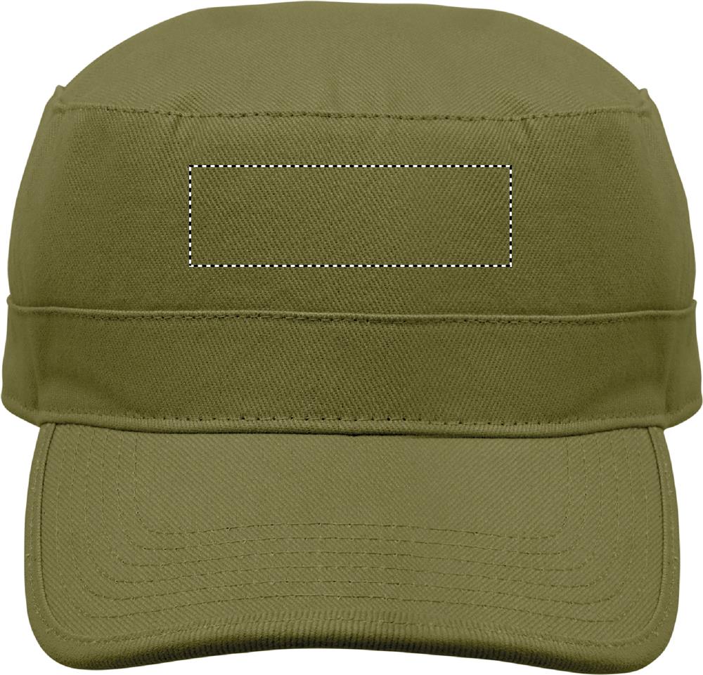 Vojenská čepice z kartáčované 260g bavlny, s polyesterovým potním páskem a nastavitelným zapínáním na suchý zip.