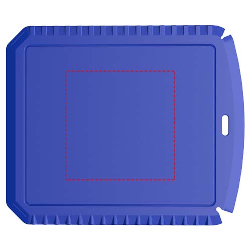 Kompaktní a praktická obdélníková škrabka na led Thrym z recyklovaného plastu je perfektním nástrojem pro použití v mrazivém počasí. Odolná konstrukce je vyrobena ze 100% recyklovaného plastu a zajišťuje účinné odstraňování ledu a námrazy. Má plochou hranu, zoubkovanou hranu a čistič stěračů čelního skla.