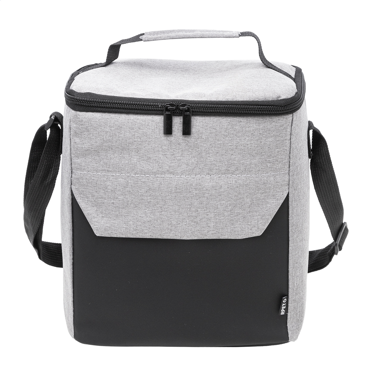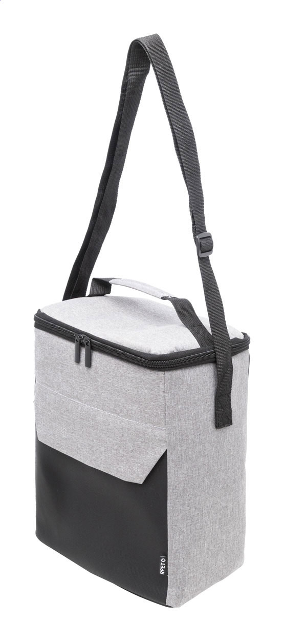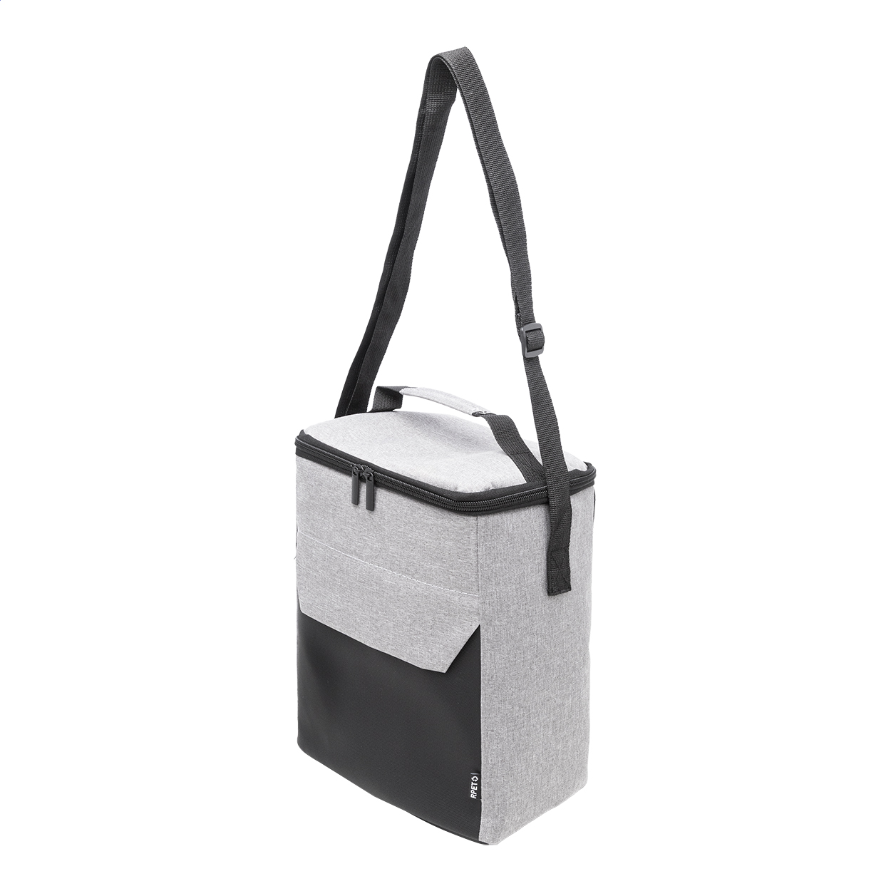 Chladicí taška na zip z RPET s detaily potaženými PU a PEVA vycpávkou. S rukojetí, nastavitelným ramenním popruhem a malou přední kapsou. 600D RPET polyester s výrazným štítkem RPET.