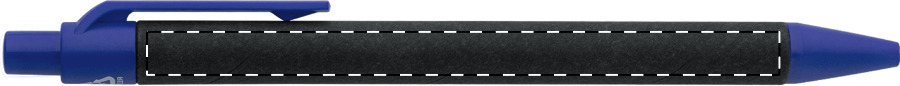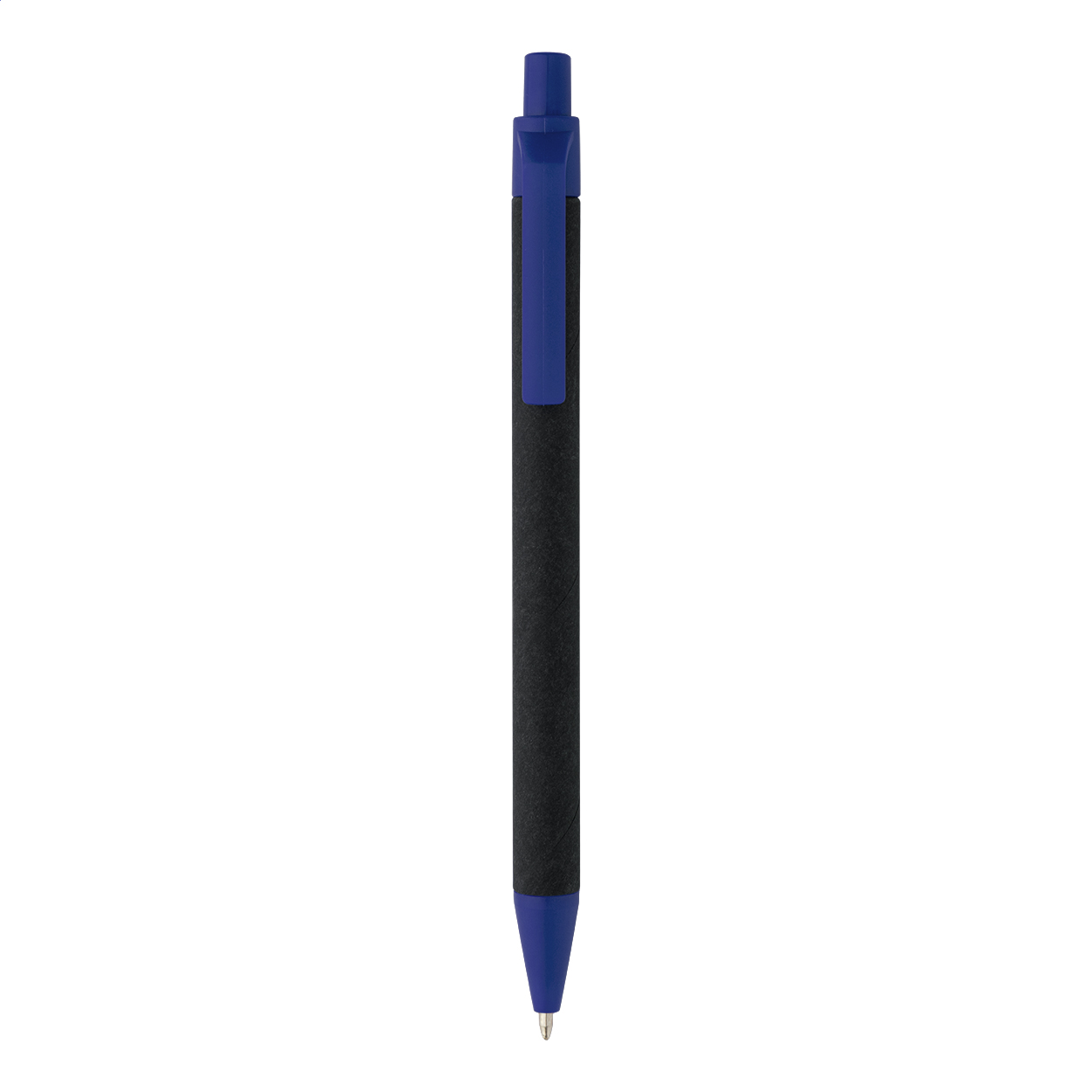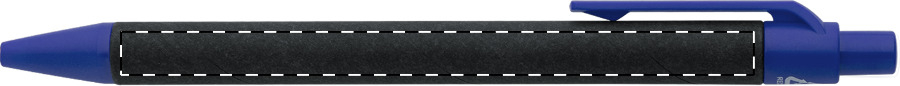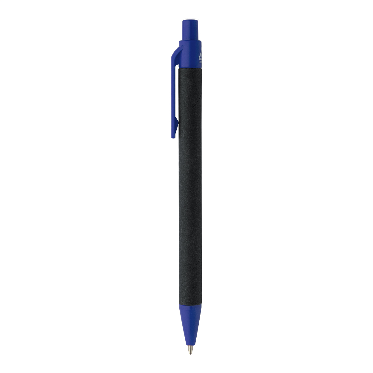 Kuličkové pero z recyklovaného papíru s černým tělem a recyklovanými ABS díly. S modrou náplní.