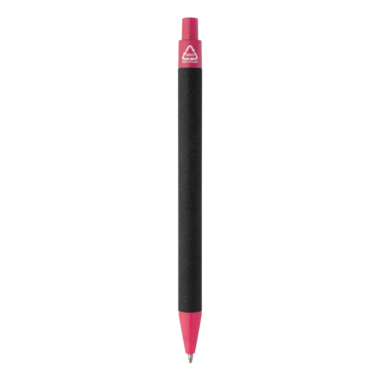 Kuličkové pero z recyklovaného papíru s černým tělem a recyklovanými ABS díly. S modrou náplní.