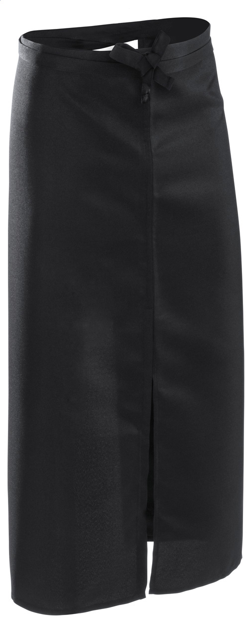 Dlouhá zástěra s předním rozparkem, 100% polyester.