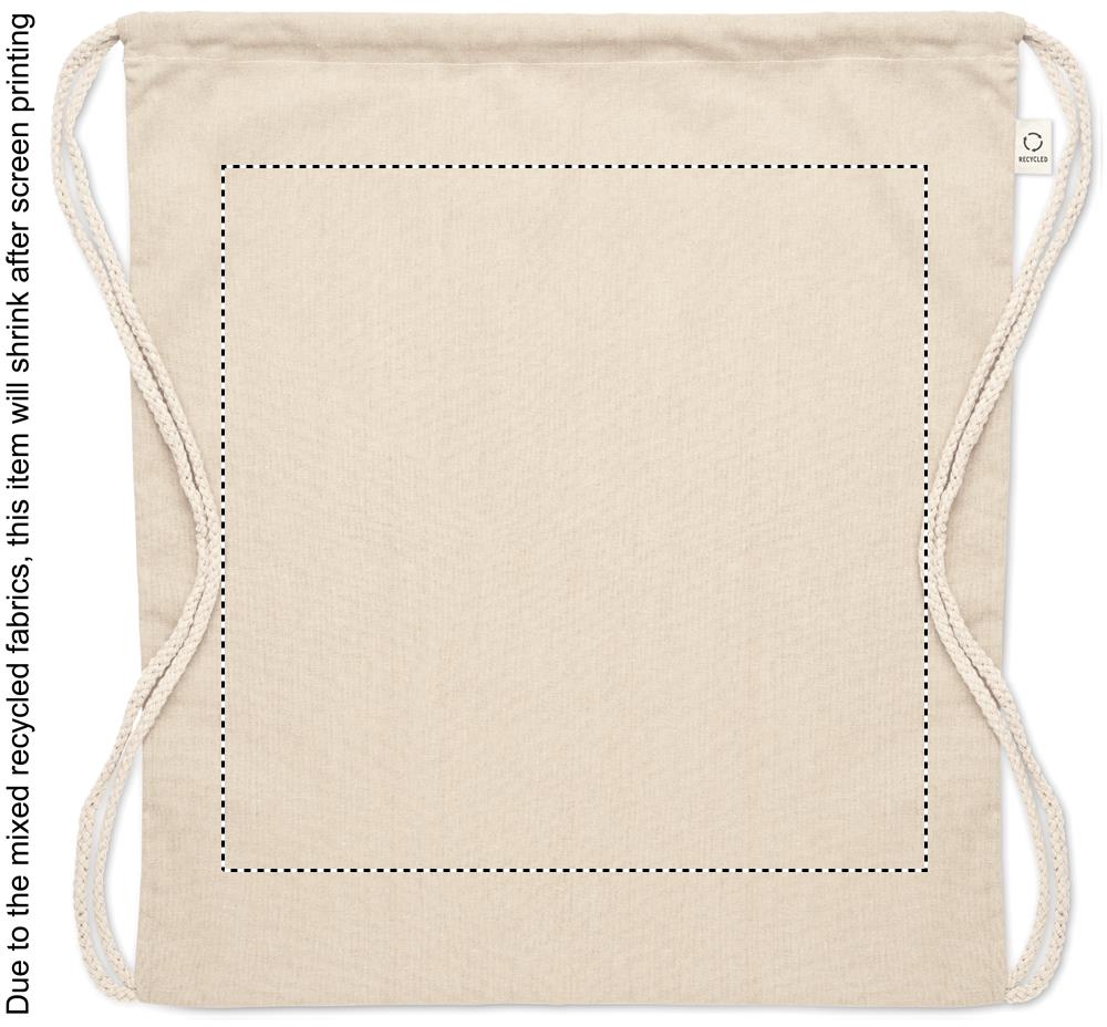 Batoh se stahovací šňůrkou z recyklované předspotřební bavlny (70 %) a RPET (30 %). 140 gr/m². Tato položka se po otisku může zmenšit.