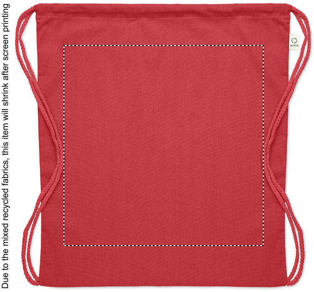 Batoh se stahovací šňůrkou z recyklované předspotřební bavlny (70 %) a RPET (30 %). 140 gr/m². Tato položka se po otisku může zmenšit.