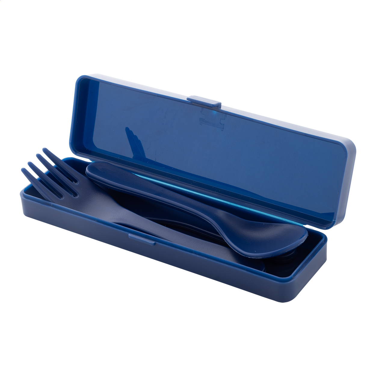 3 ks PP plastové příbory v barevném pouzdře. Včetně vidličky, nože a lžíce.