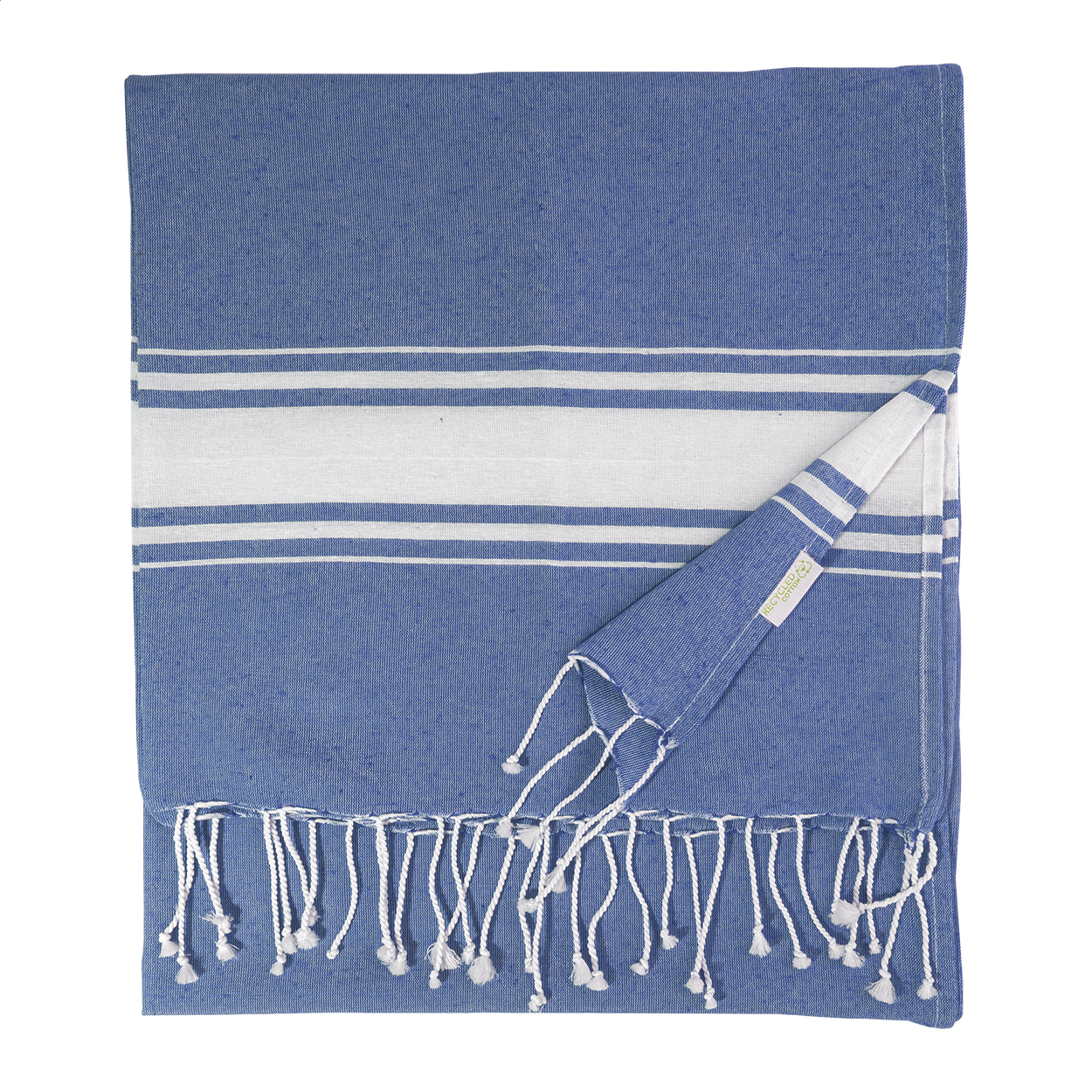 Dvoubarevná plážová osuška pareo ze 70 % recyklované bavlny a 30 % RPET polyesteru, 180 g/m²