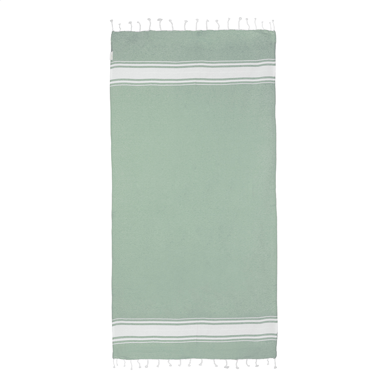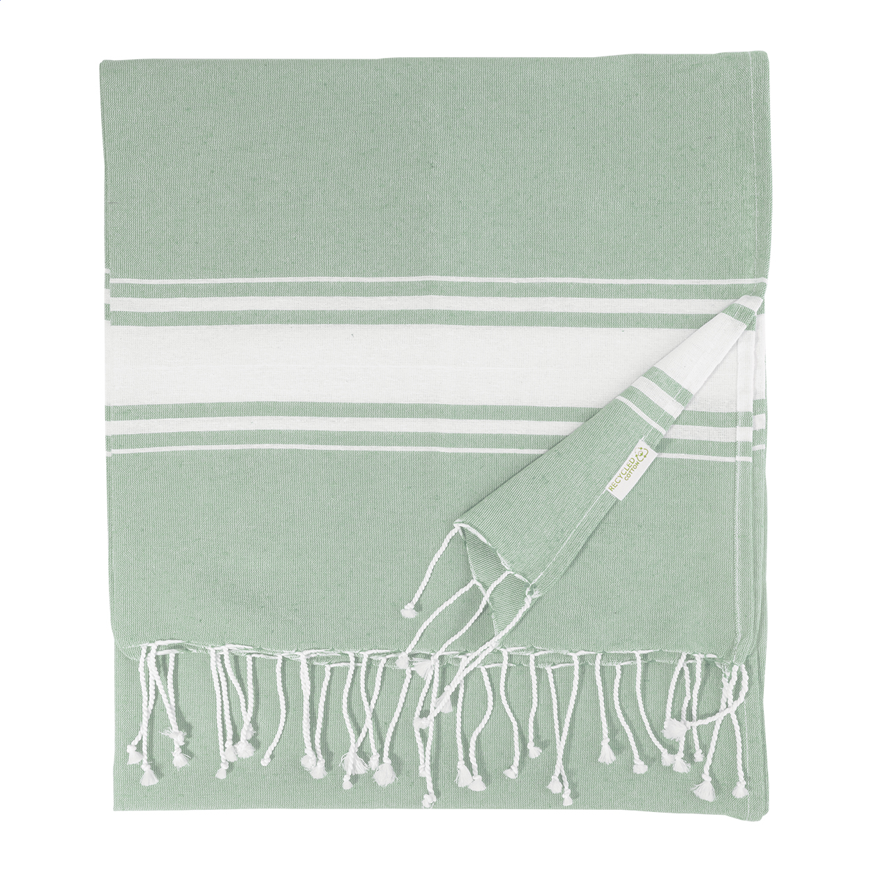 Dvoubarevná plážová osuška pareo ze 70 % recyklované bavlny a 30 % RPET polyesteru, 180 g/m²