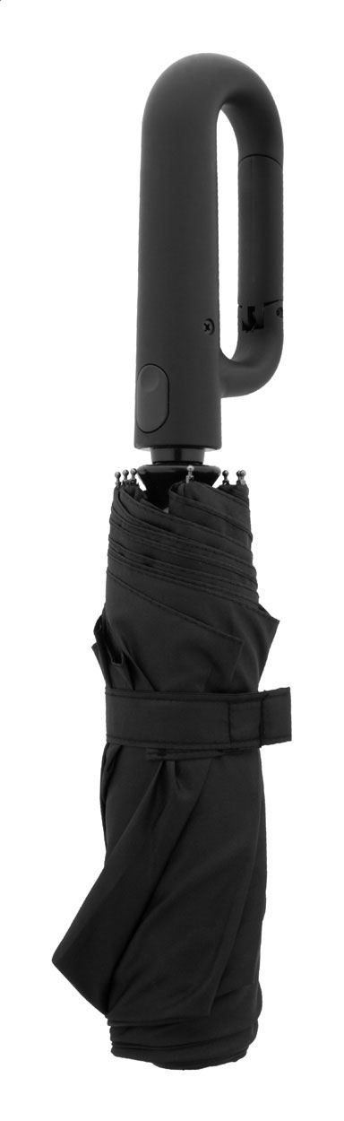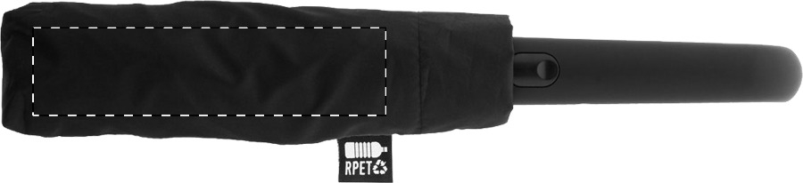 Plně automatický (otevřít/zavřít), větruodolný skládací deštník s 8 panely v pouzdře ve stejné barvě. S kovovým rámem, sklolaminátovými žebry a pogumovanou karabinou. Pongee 190T RPET. S výrazným štítkem RPET.