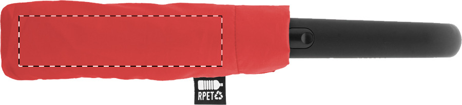 Plně automatický (otevřít/zavřít), větruodolný skládací deštník s 8 panely v pouzdře ve stejné barvě. S kovovým rámem, sklolaminátovými žebry a pogumovanou karabinou. Pongee 190T RPET. S výrazným štítkem RPET.