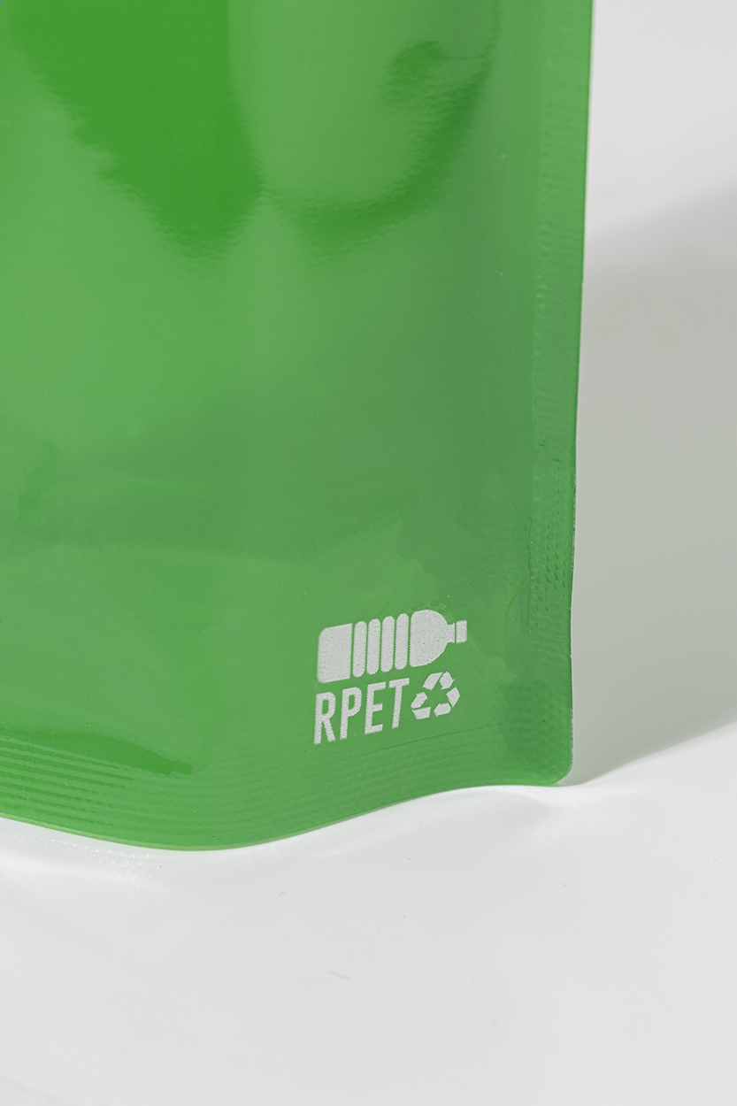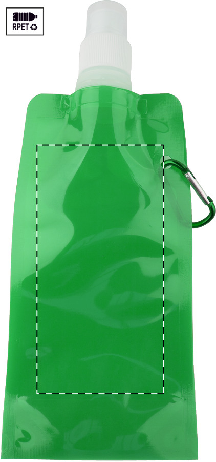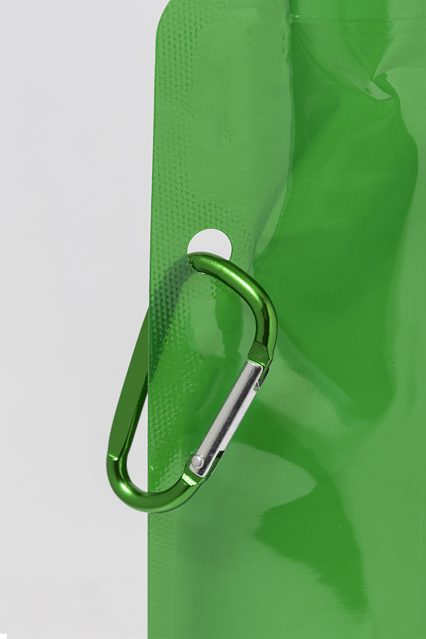 Skládací sportovní láhev z RPET s víčkem na pití a hliníkovou karabinou, 500 ml. Bez BPA. Nevhodná pro sycené nápoje.
