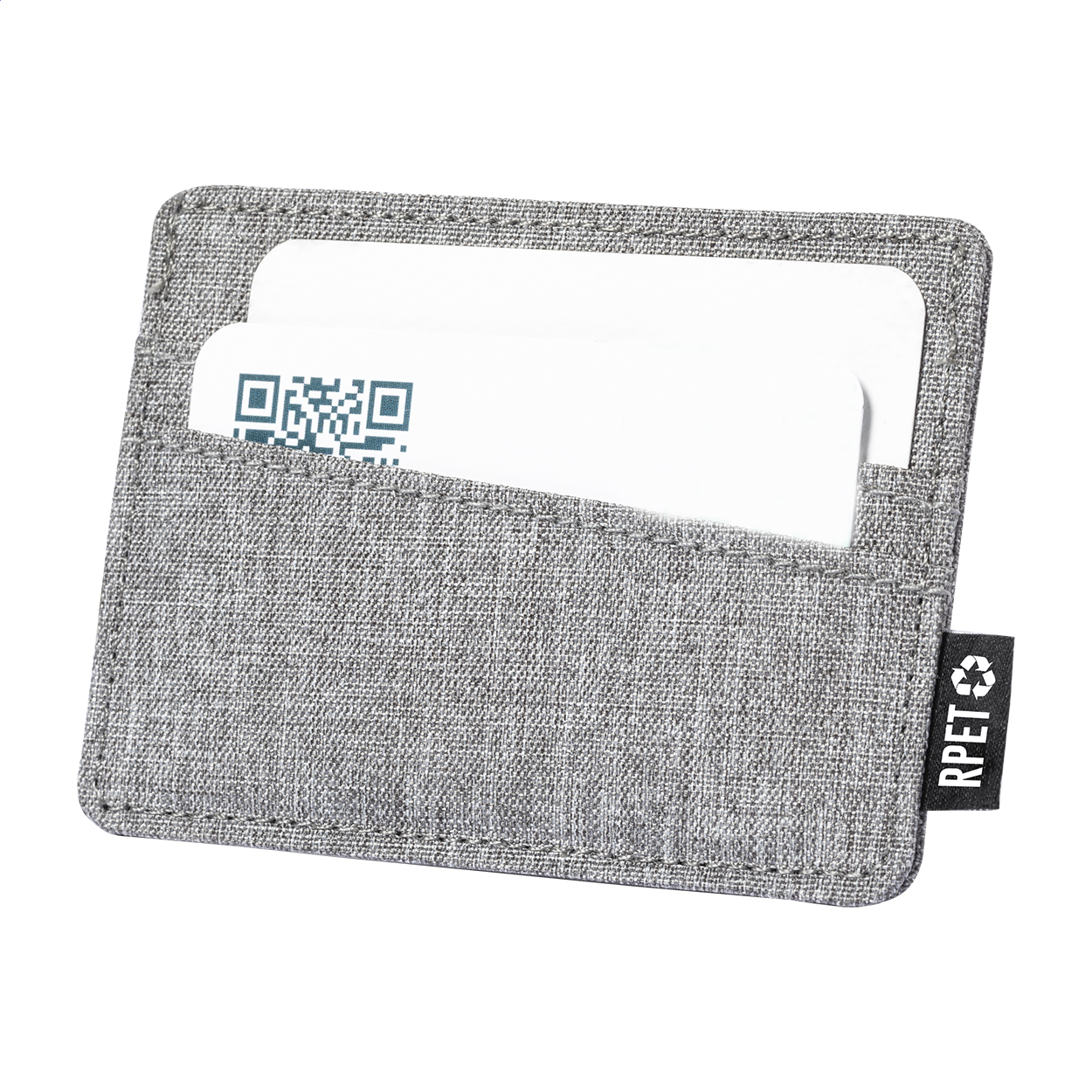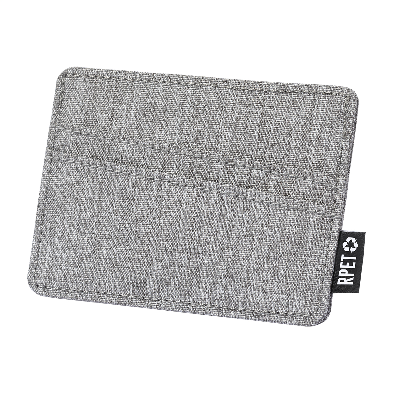 Polyesterový RPET obal na kreditní karty se 3 přihrádkami na karty. S výrazným štítkem RPET.