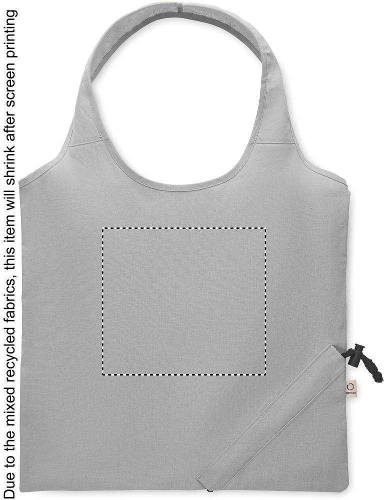 Skládací nákupní taška z recyklované bavlny (70 % recyklované bavlny a 30 % RPET). 140 gr/m². Tento produkt se po tisku může srazit.