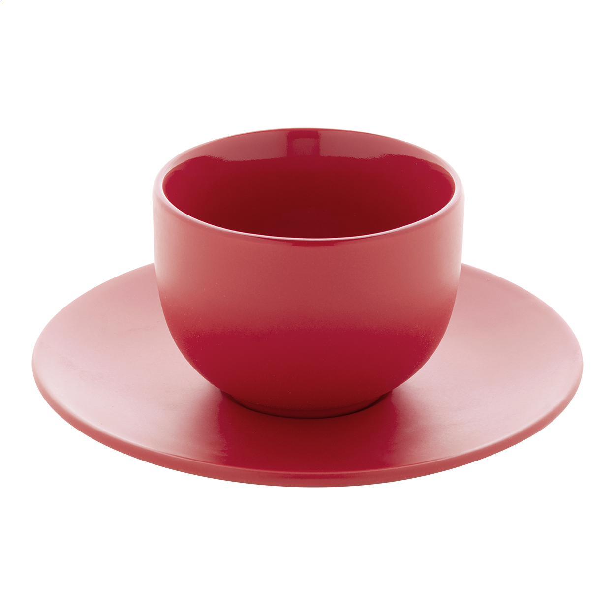 Vysoce kvalitní keramická sada šálků na cappuccino se 2 šálky a podšálky. S matnou vnější a lesklou vnitřní povrchovou úpravou. 200 ml. V kraftové papírové krabici.