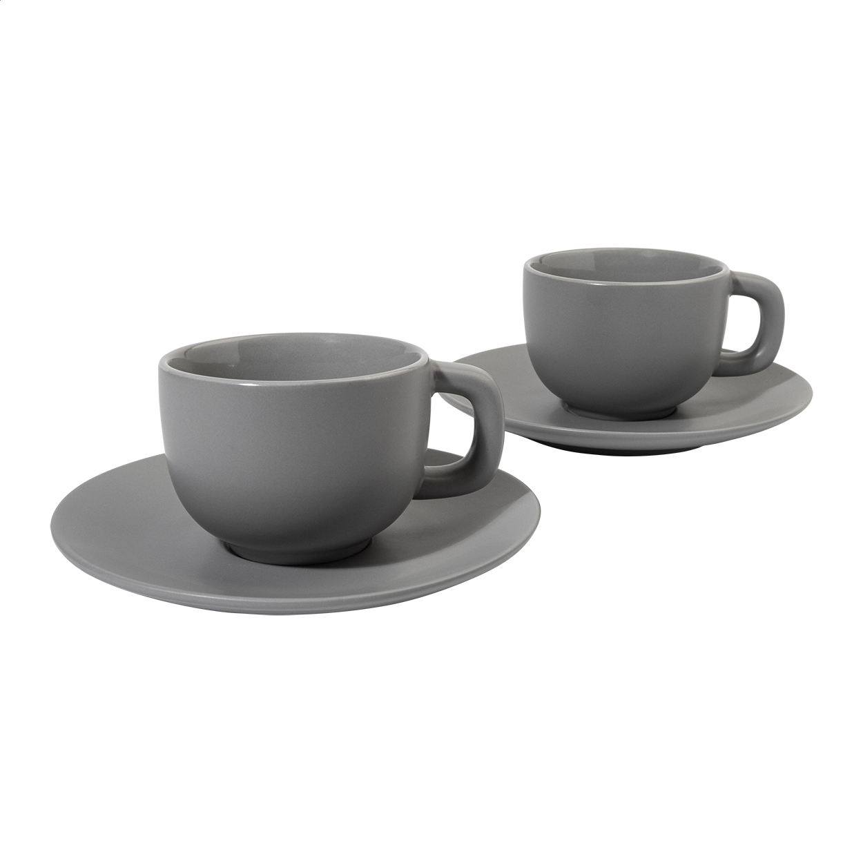 Vysoce kvalitní keramická sada šálků na cappuccino se 2 šálky a podšálky. S matnou vnější a lesklou vnitřní povrchovou úpravou. 200 ml. V kraftové papírové krabici.