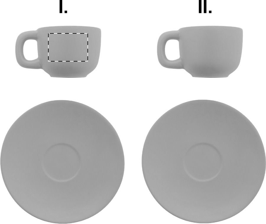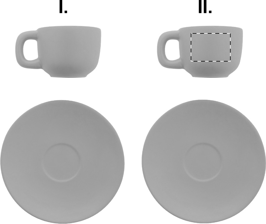 Vysoce kvalitní sada keramických šálků na espresso se 2 šálky a podšálky. S matnou vnější a lesklou vnitřní povrchovou úpravou. 85 ml. V kraftové papírové krabici.