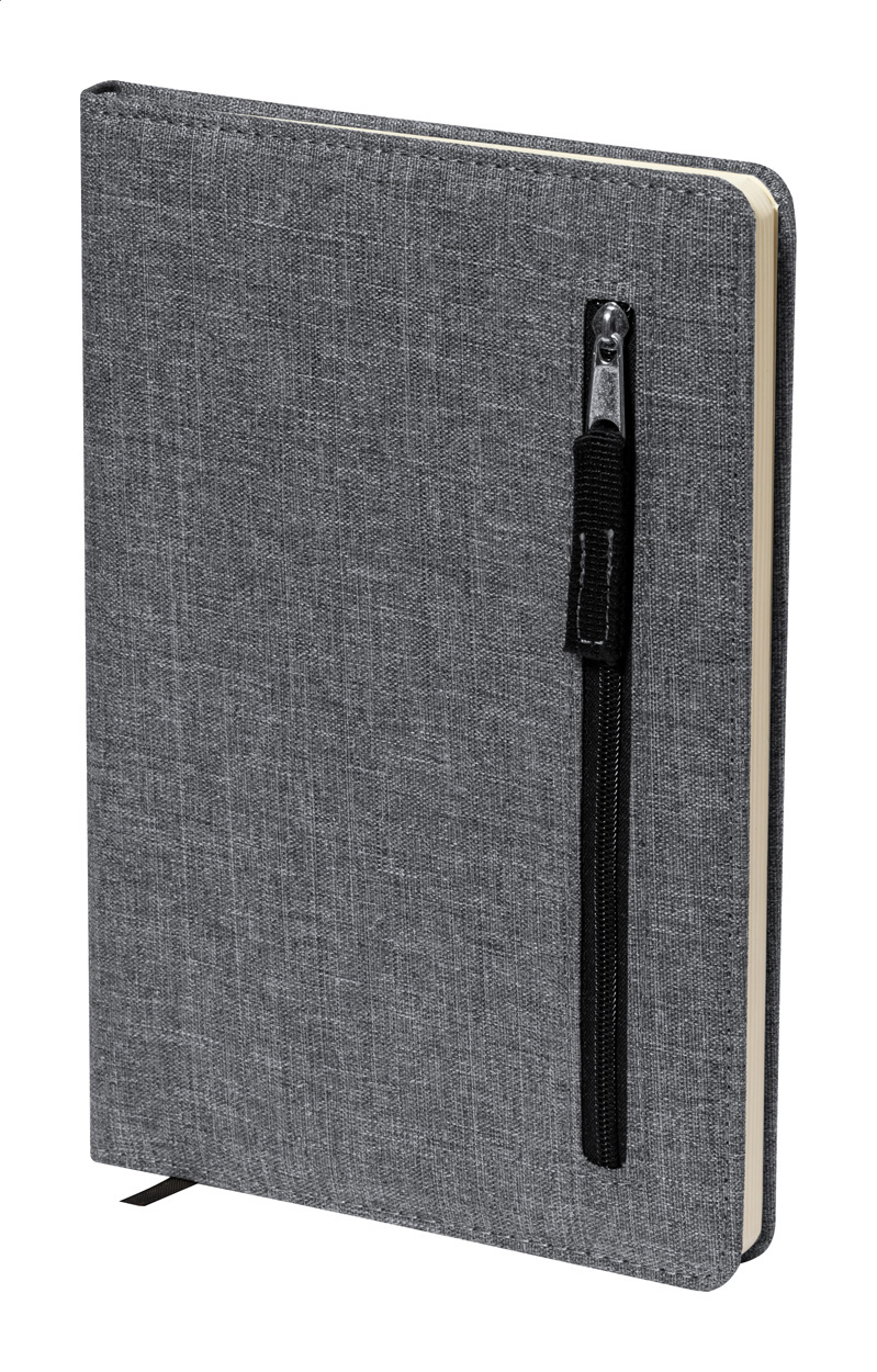 Spirálový blok z recyklovaného mléka v kartonu s gumovým páskem a 80 linkovanými listy. Včetně kuličkového pera z recyklovaného mléka v kartonu s modrou náplní.