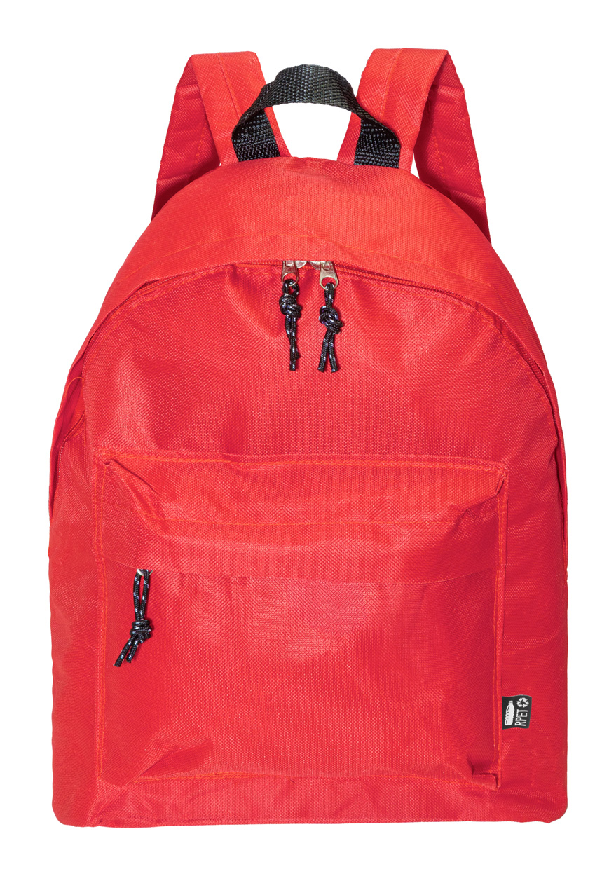 RPET batoh s hlavním prostorem na zip, přední kapsou na zip, polstrovanými zády a ramenními popruhy. Polyester 600D RPET, s výrazným štítkem RPET.