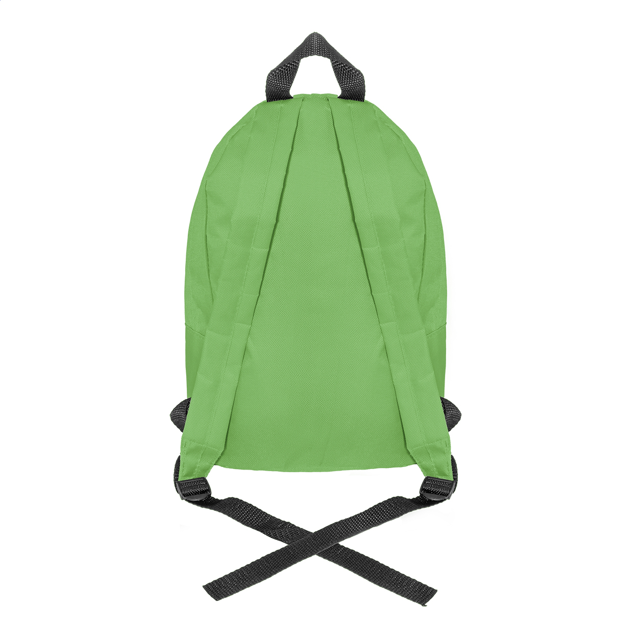 RPET batoh s hlavním prostorem na zip, přední kapsou na zip, polstrovanými zády a ramenními popruhy. Polyester 600D RPET, s výrazným štítkem RPET.