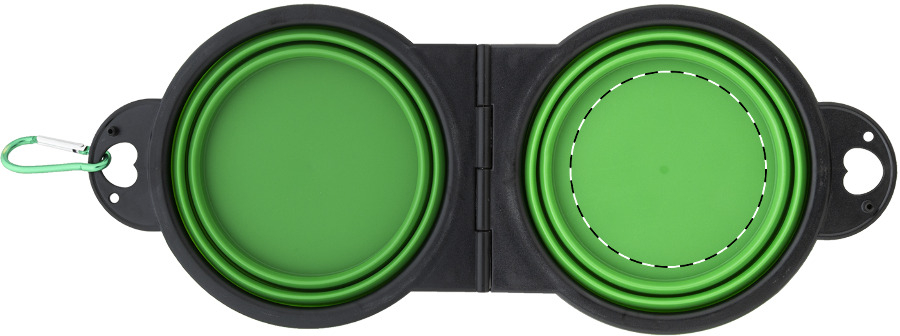 Skládací miska pro domácí mazlíčky z odolného TPE se dvěma přihrádkami o objemu 450 ml a barevně sladěnou hliníkovou karabinou.
