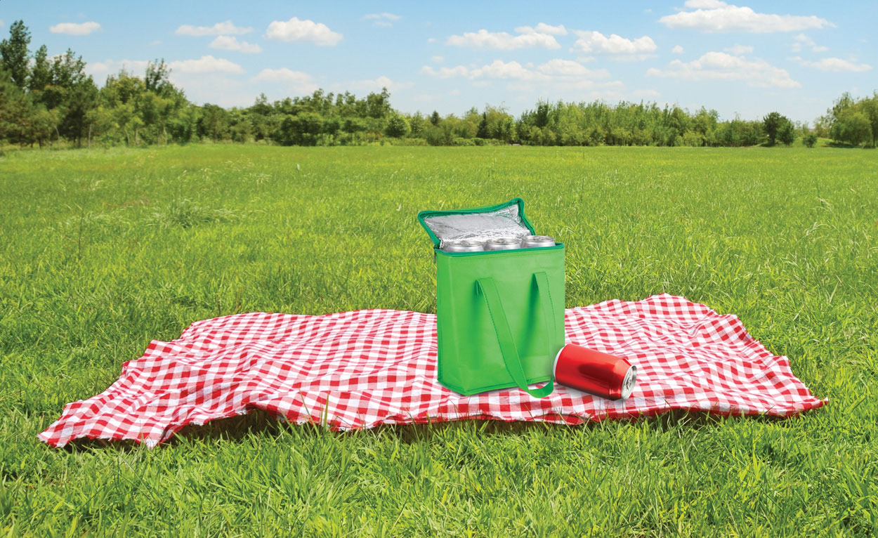 Chladicí taška z netkané textilie na zip s hliníkovou vsadkou uvnitř. Vhodné pro 6 ks plechovek 0,33 l nebo 3 ks 0,5 l.