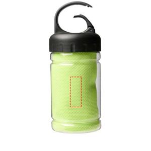 Chladivý ručník v plastové nádobce oceníte při sportování, cvičení nebo jen v horkém počasí. Ručník se vyznačuje rychlou absorpcí a rychlým schnutím. Ručník je možné prát. Dodává se v nádobce z PET s rukojetí s vestavěnou karabinou pro snadné nošení. Velikost: 30x80 cm. Materiál: PET.