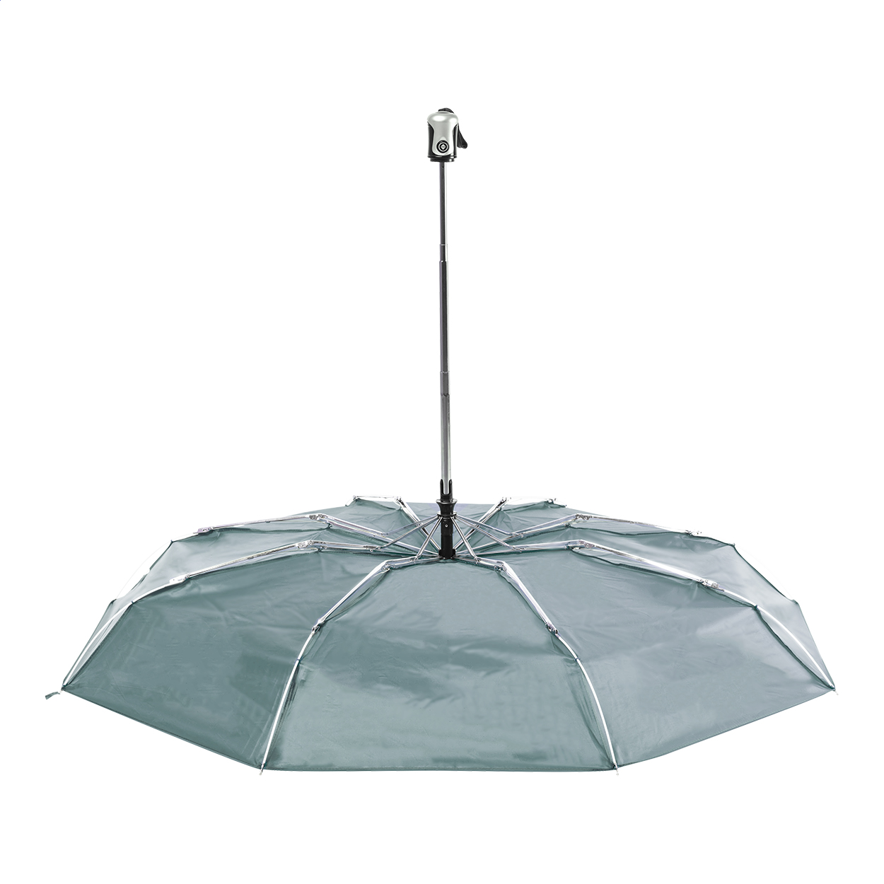 Plně automatický (otevírání/zavírání) větruodolný skládací deštník s 8 panely. S kovovou tyčkou, rámem z kovových/skelných vláken a odpovídajícím barevným pouzdrem a plastovou rukojetí. 190T polyester.