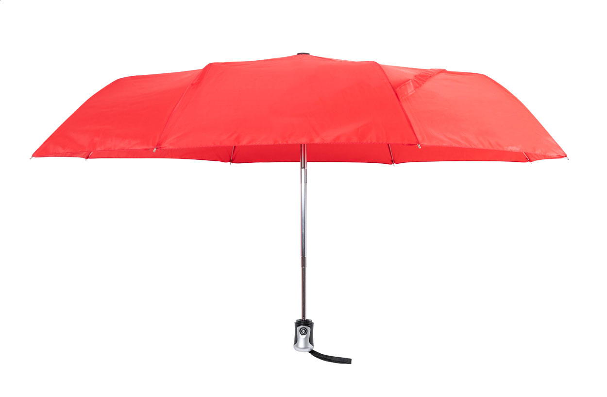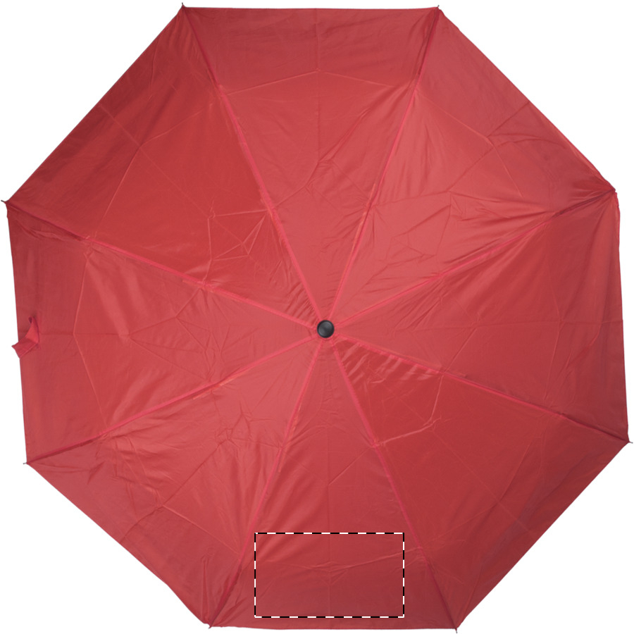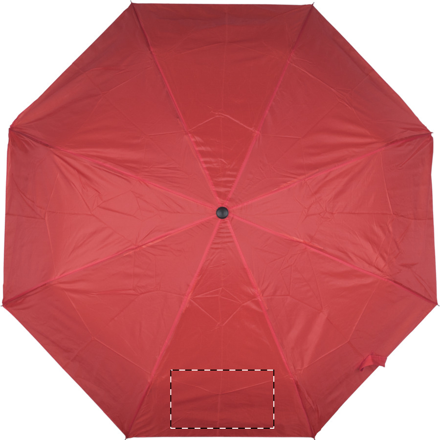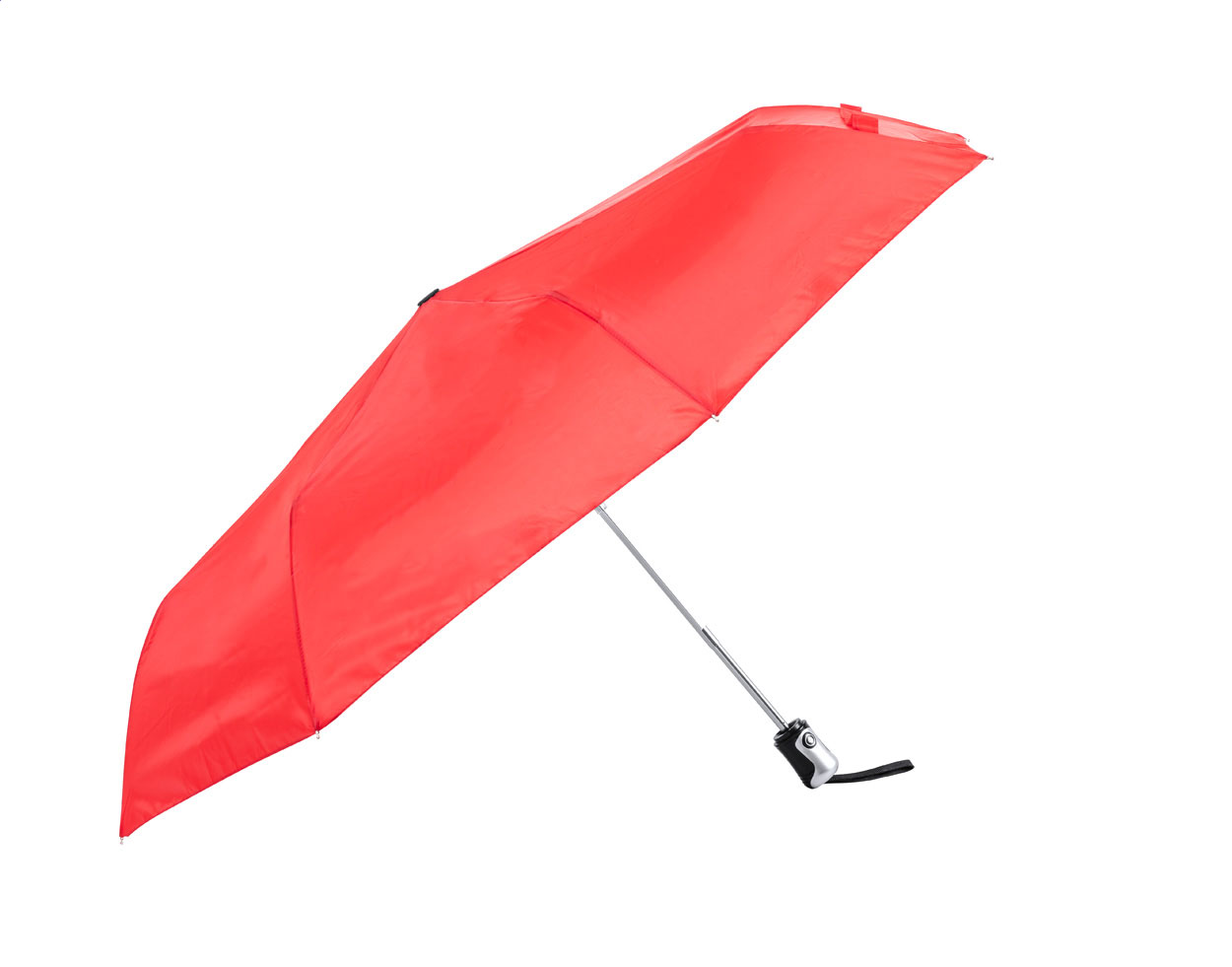 Plně automatický (otevírání/zavírání) větruodolný skládací deštník s 8 panely. S kovovou tyčkou, rámem z kovových/skelných vláken a odpovídajícím barevným pouzdrem a plastovou rukojetí. 190T polyester.
