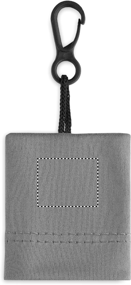 Čisticí hadřík z RPET s pouzdrem a PP plastovým háčkem.