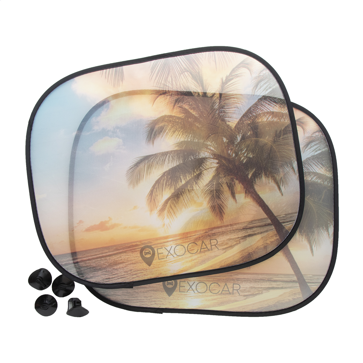 Skládací stínítka na boční okna automobilu vhodná pro sublimační potisk. Dodáváno s přísavkami.