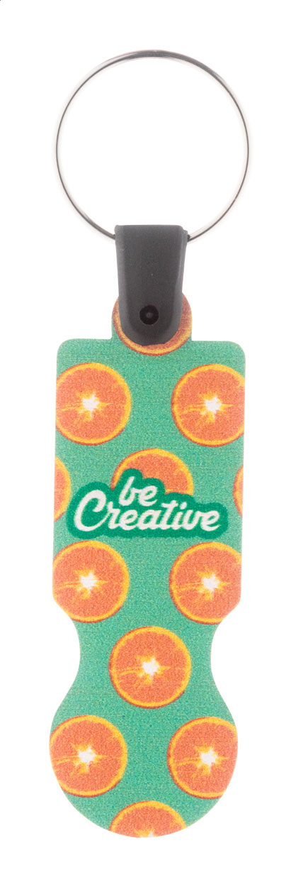 Přívěšek na klíče se žetonem do nákupního vozíku z březové překližky s plnobarevnou grafikou. Cena je včetně UV LED tisku na jedné straně, nezahrnuje tiskovou přípravu. Min. mn.: 200 ks.