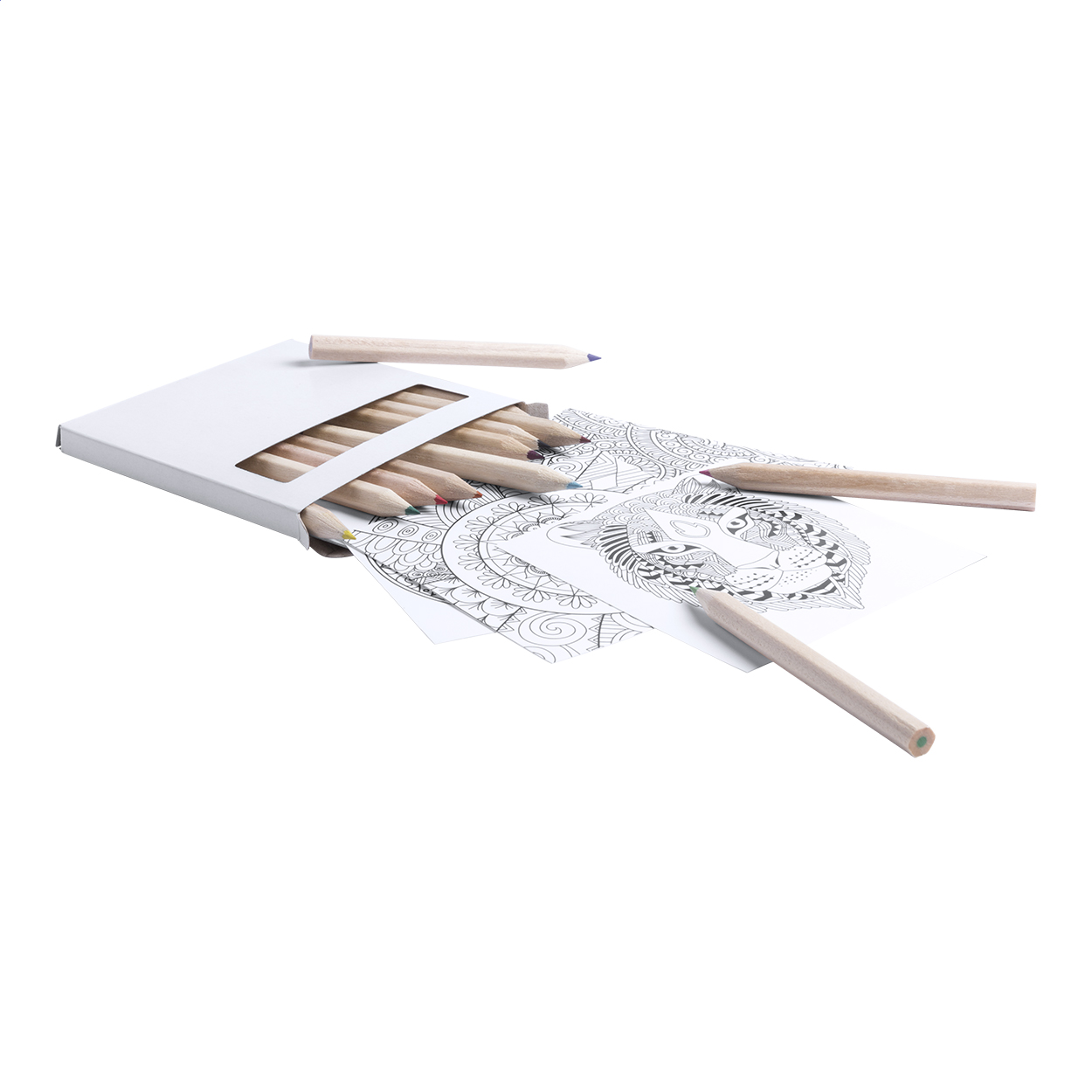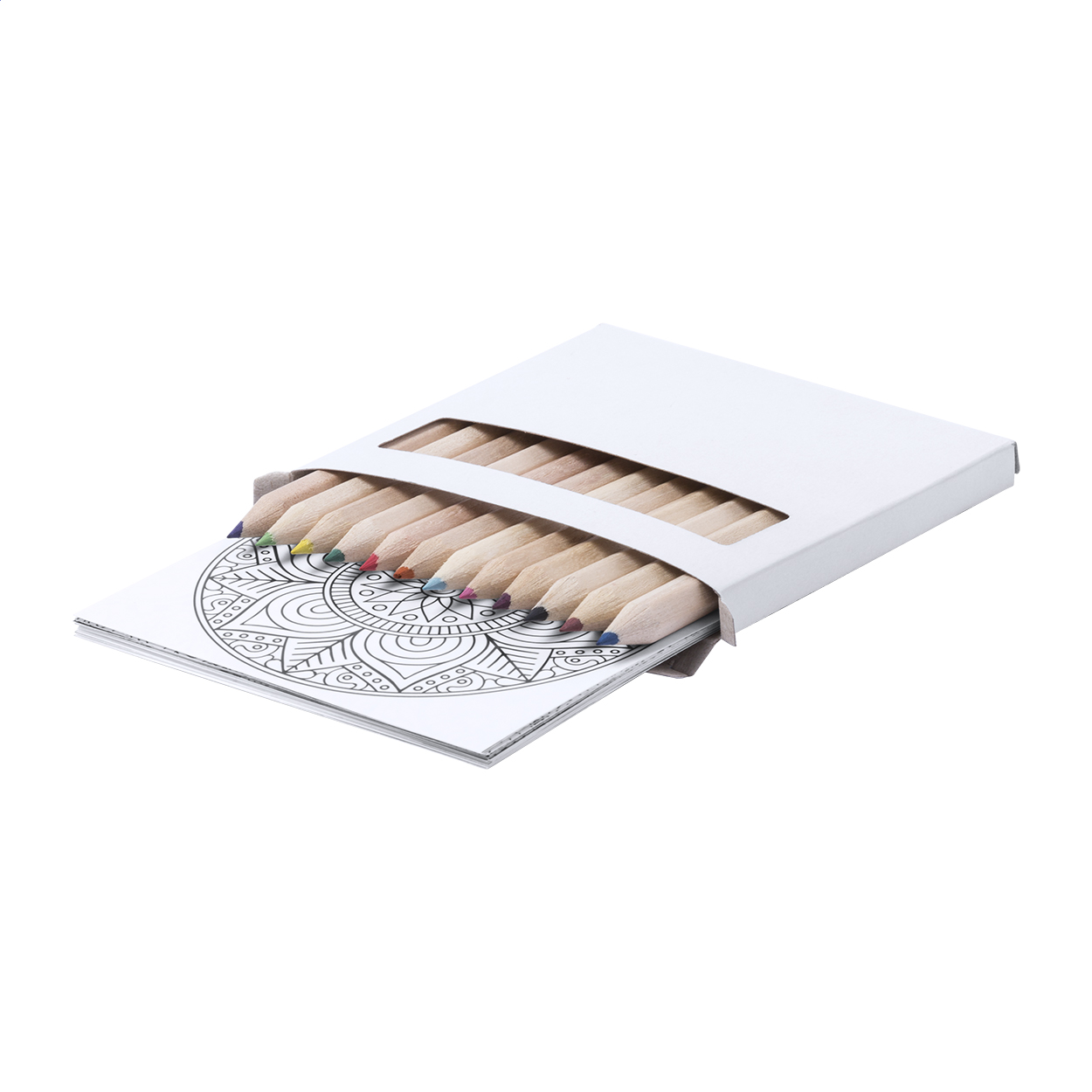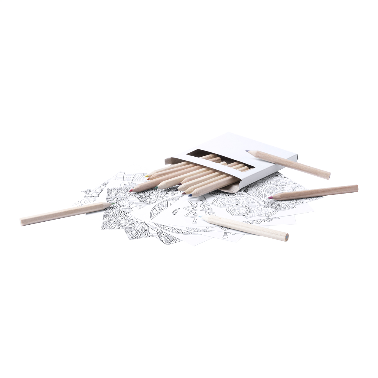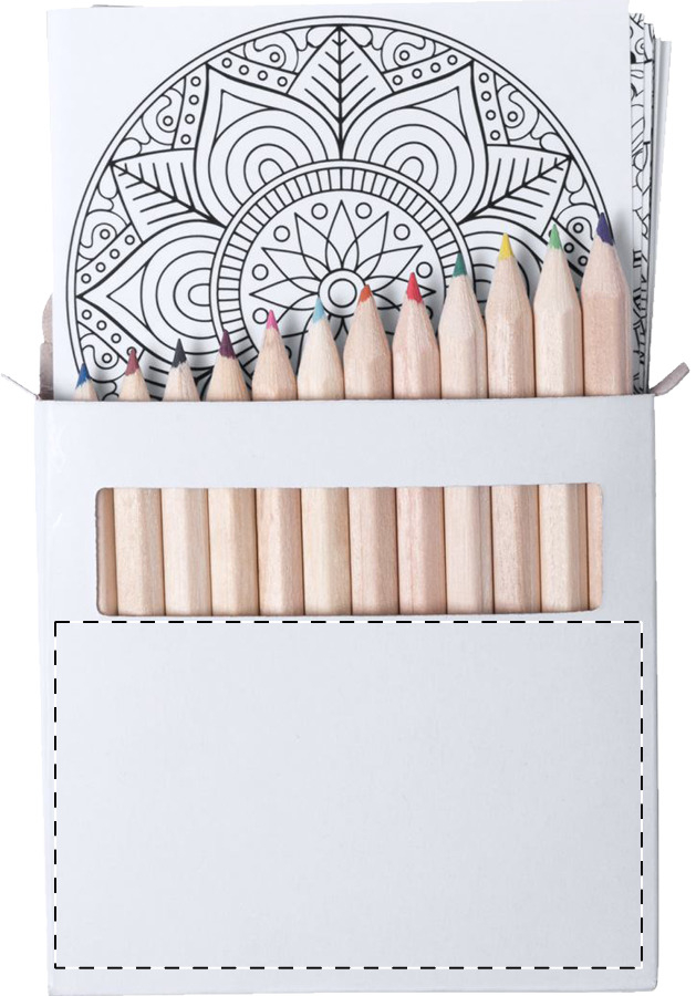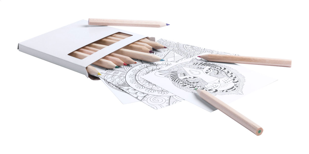 Set 12 dřevěných pastelek a 12 omalovánek se vzory mandal.