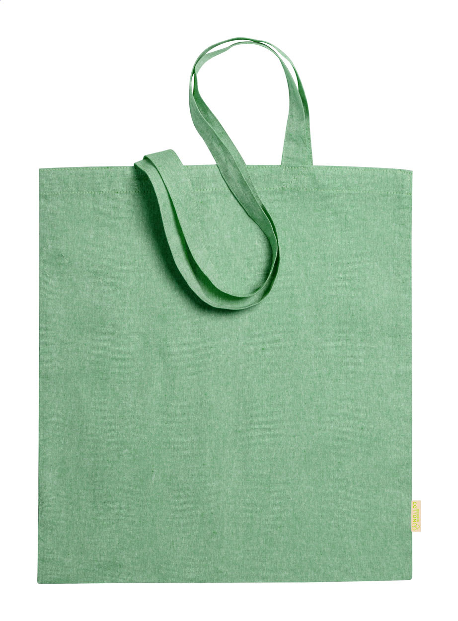 Opakovaně použitelná nákupní taška z recyklované bavlny s dlouhými uchy. Gramáž látky 120 g/m2.