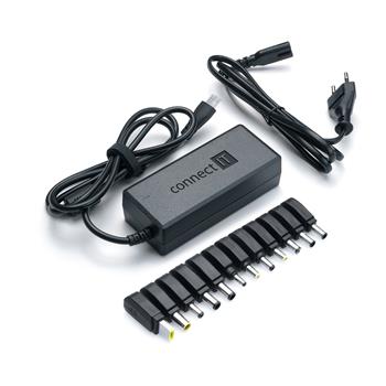 Klíčové vlastnosti: CONNECT IT univerzální notebookový adaptér 70 W. Správnou funkci adaptéru signalizuje LED kontrolka. Adaptér je vybaven ochranami proti přepětí, nadproudu a zkratu, které brání poškození vašeho notebooku a díky svým kompaktním rozměrům jej můžete vzít vždy s sebou a napájet svůj notebook kdykoliv budete potřebovat. Součástí balení je 12 vyměnitelných koncovek s praktickým držákem.