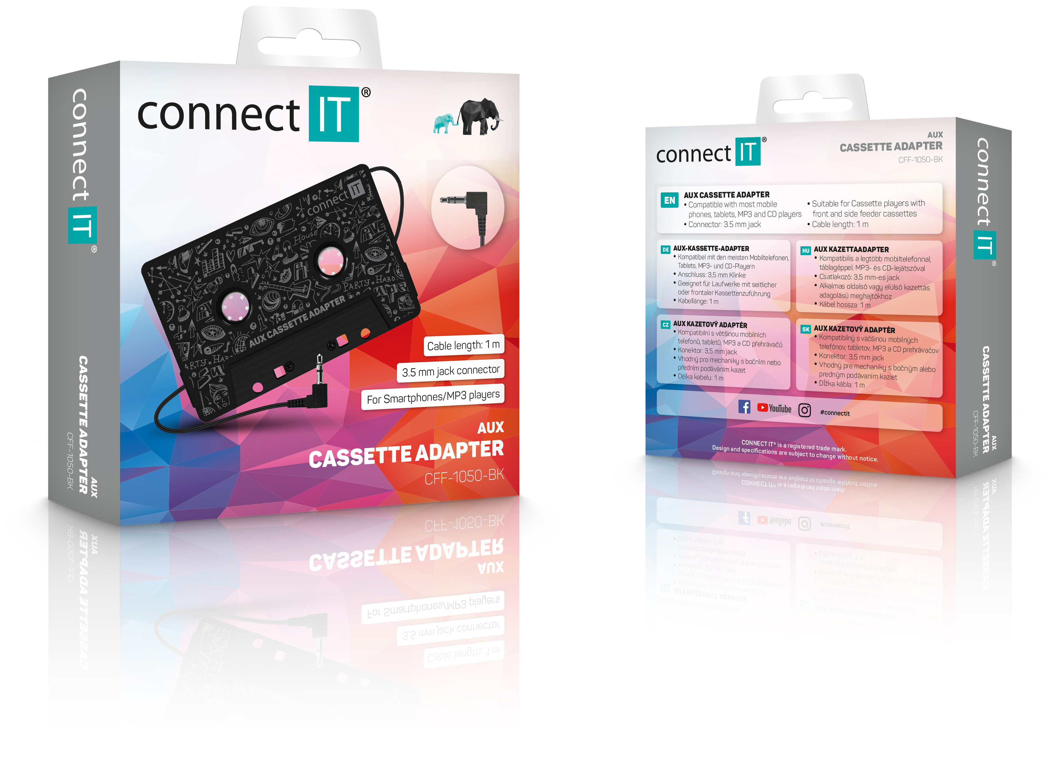 CONNECT IT AUX kazetový adaptér, 3,5 mm jack - Černá
