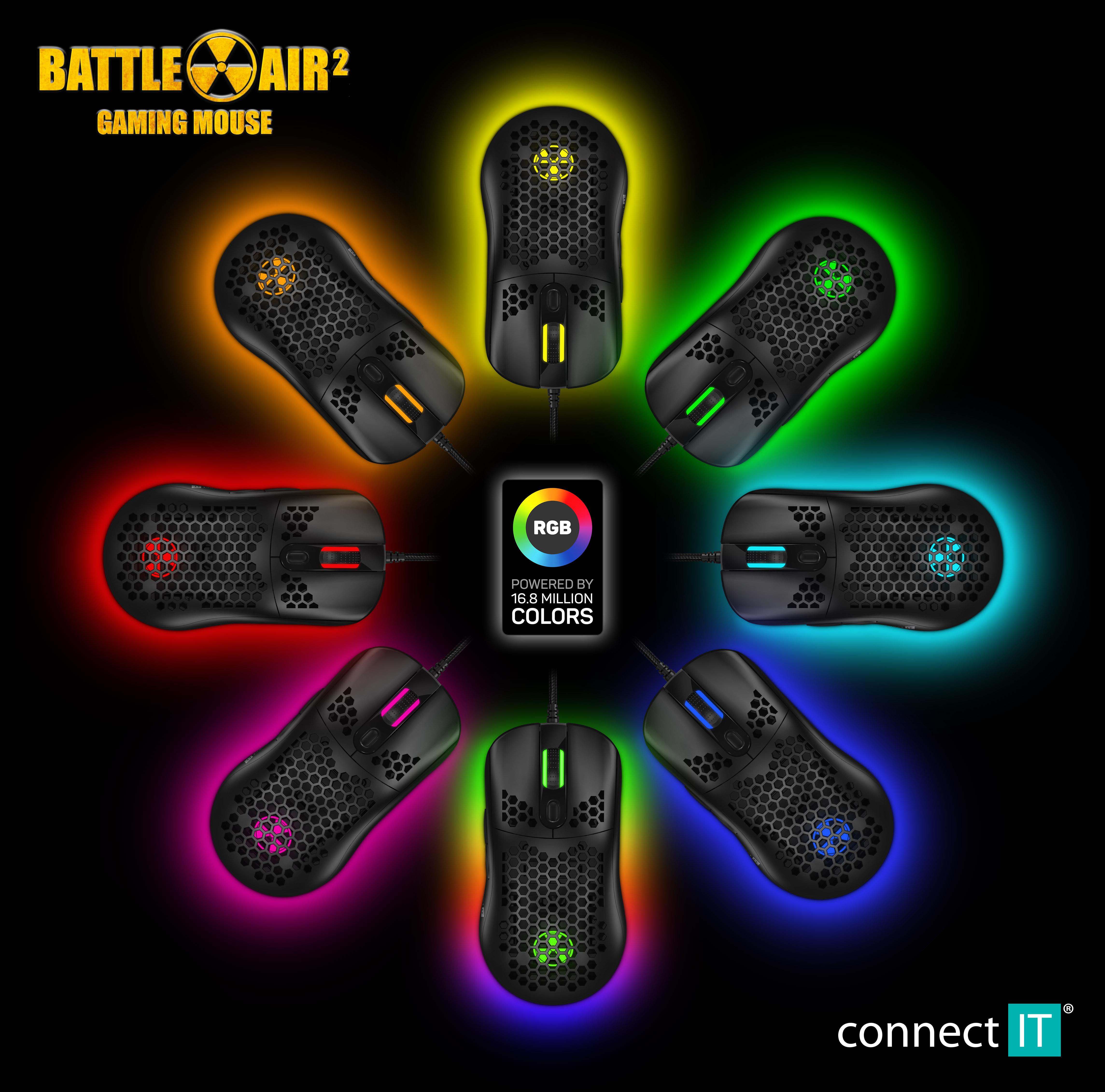 CONNECT IT BATTLE AIR 2 profesionální optická herní myš + SW, 12800 DPI - Černá