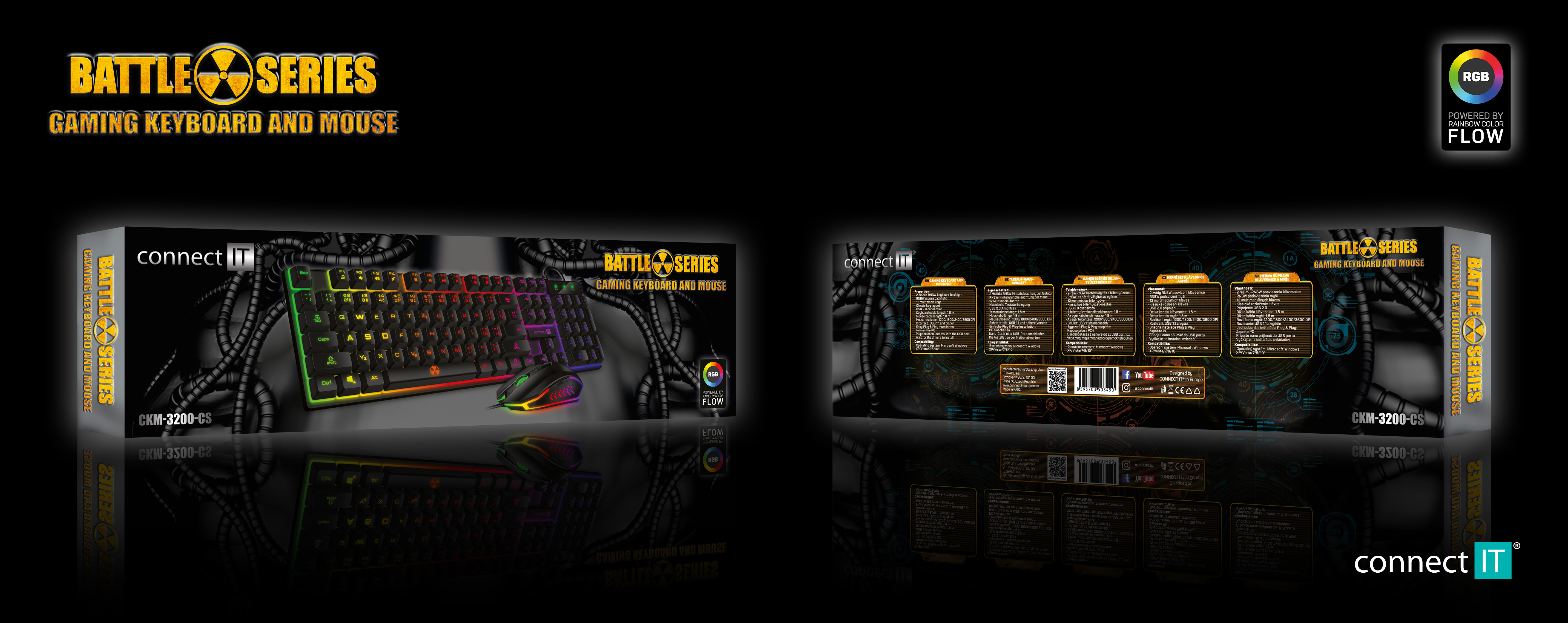Klíčové vlastnosti: Profesionální gamingový set klávesnice a myši Battle series pro hráče počítačových her v českém a slovenském layoutu s RNBW podsvícením a třístupňovou regulací intenzity podsvícení klávesnice.