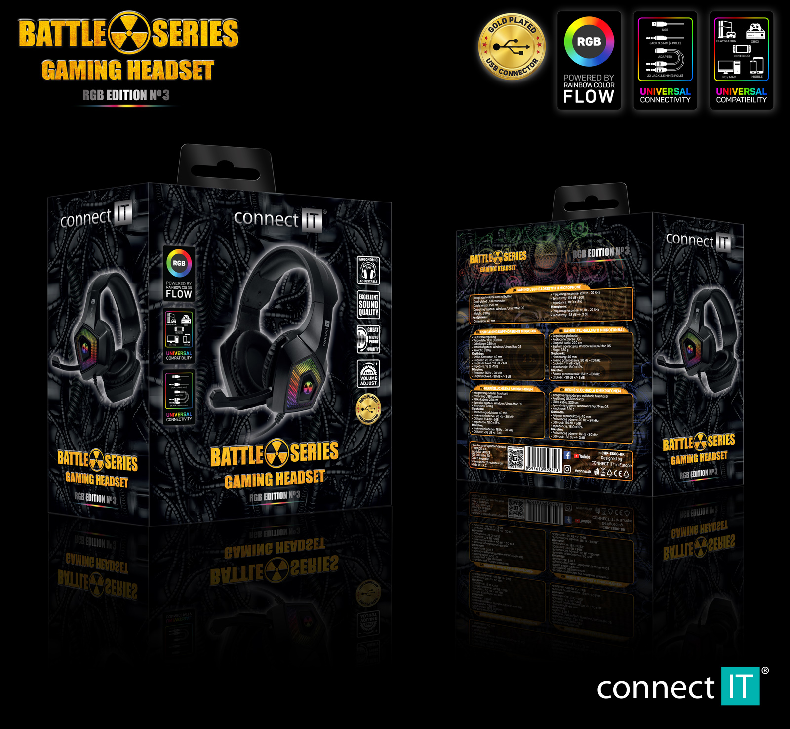 CONNECT IT BATTLE RGB Ed. 3 herní sluchátka s mikrofonem, 2xJack+USB - Černá