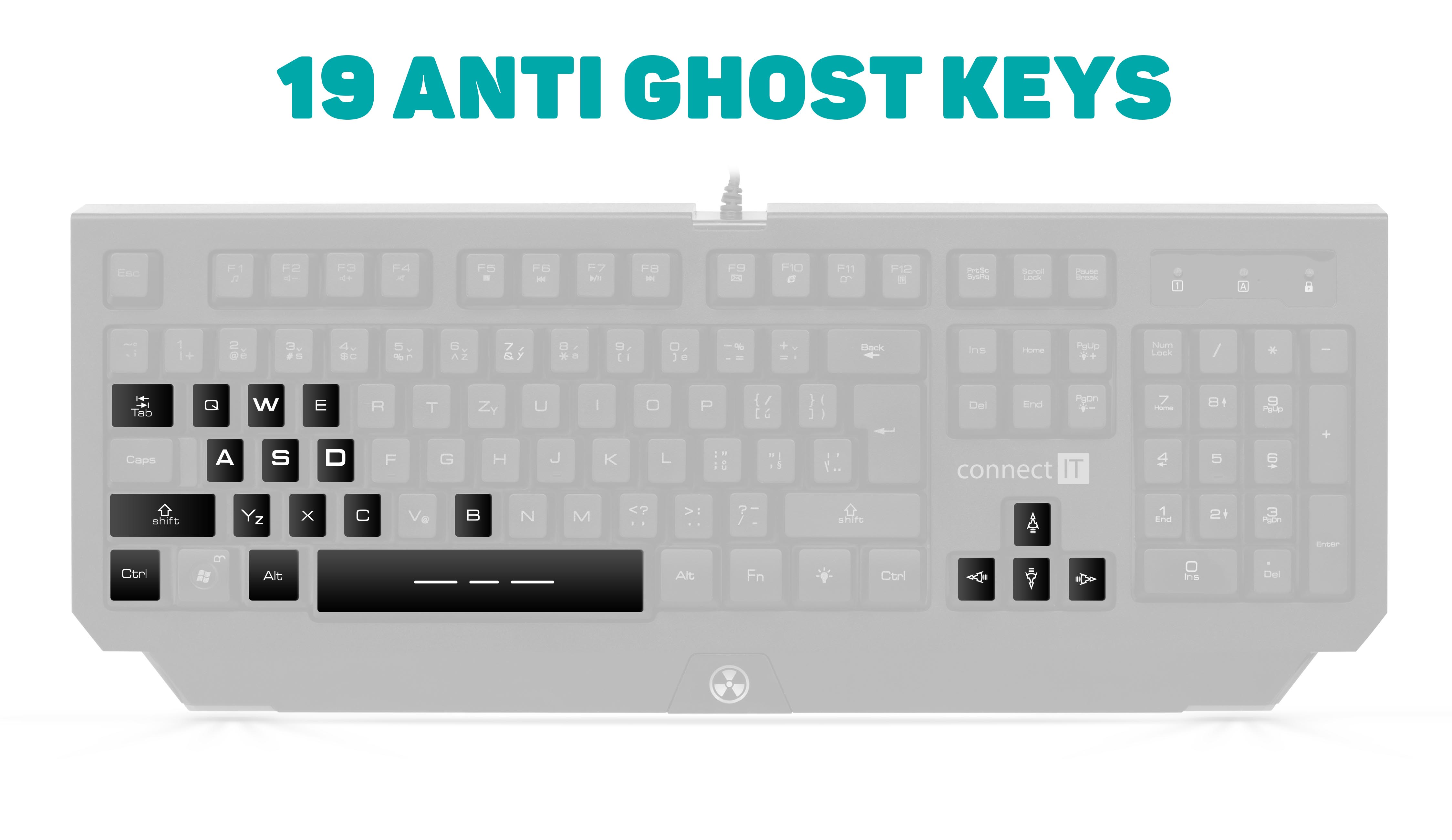 Výhody produktu: Klávesnice nabízí 12 multimediálních tlačítek, které vám usnadní práci se zvukem i videem a 19 Anti-ghost kláves. Během hraní se tlačítko Windows zablokuje, abyste si mohli užít nerušený herní zážitek. Klávesnici si můžete výškově jednoduše přizpůsobit vaším potřebám pomocí nastavitelných nožiček. Konektivitu zajišťuje USB kabel dlouhý 180 cm, který jen stačí připojit do USB portu zařízení a ovladač se už sám nainstaluje. Klávesnice nabízí i barevné LED podsvícení ve více volitelných barvách.