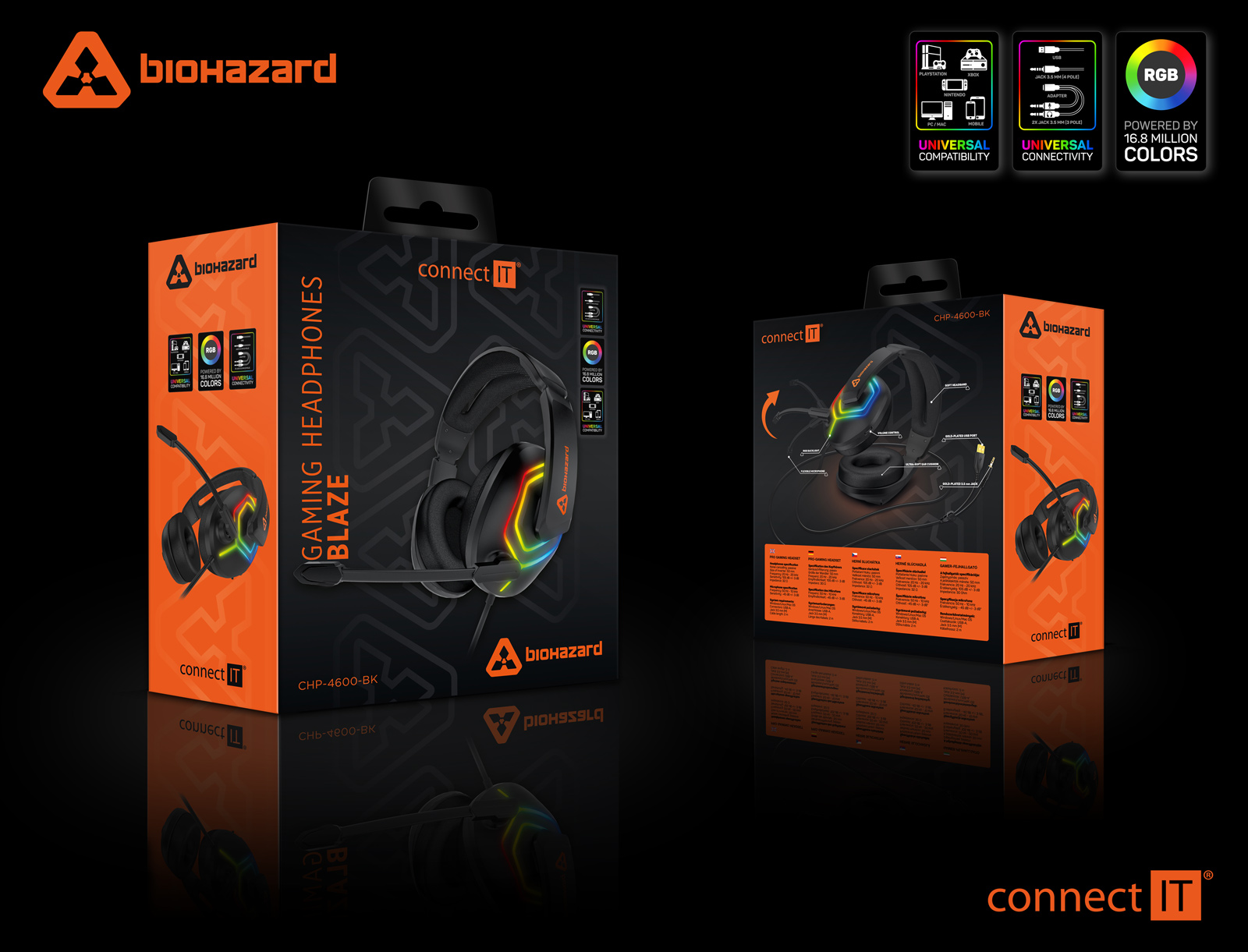 CONNECT IT BIOHAZARD Blaze herní sluchátka s mikrofonem, 1xJack+USB - Černá